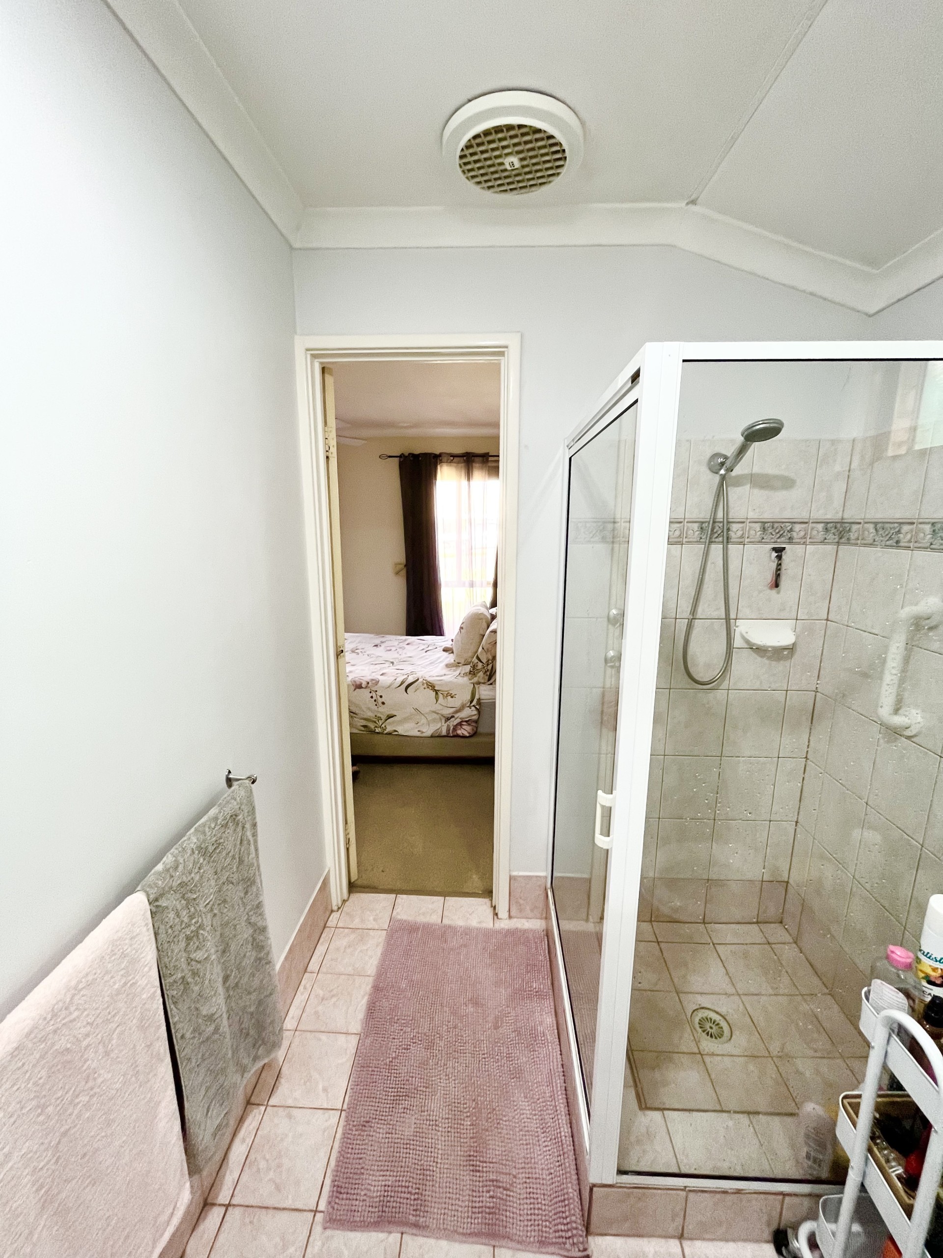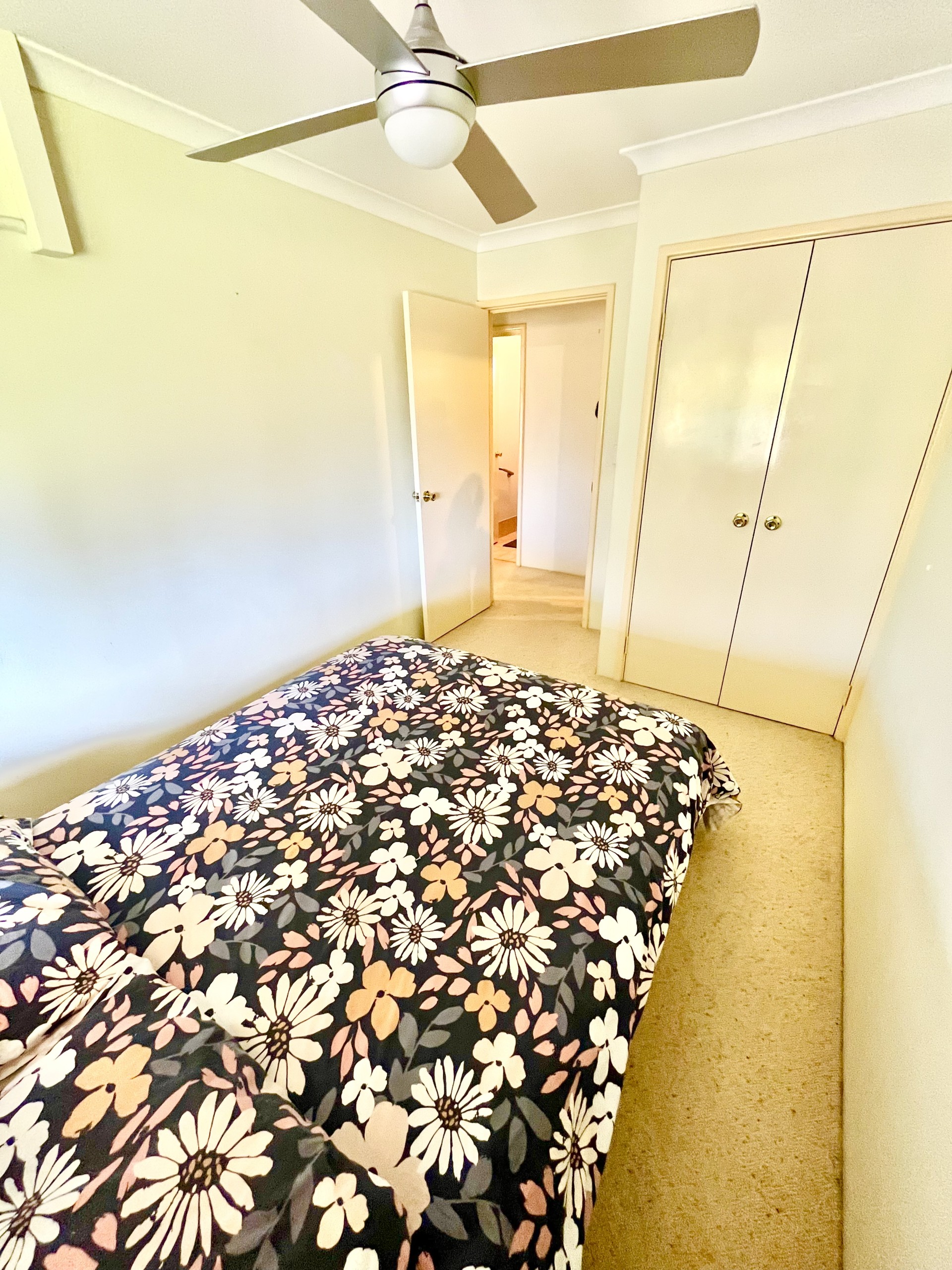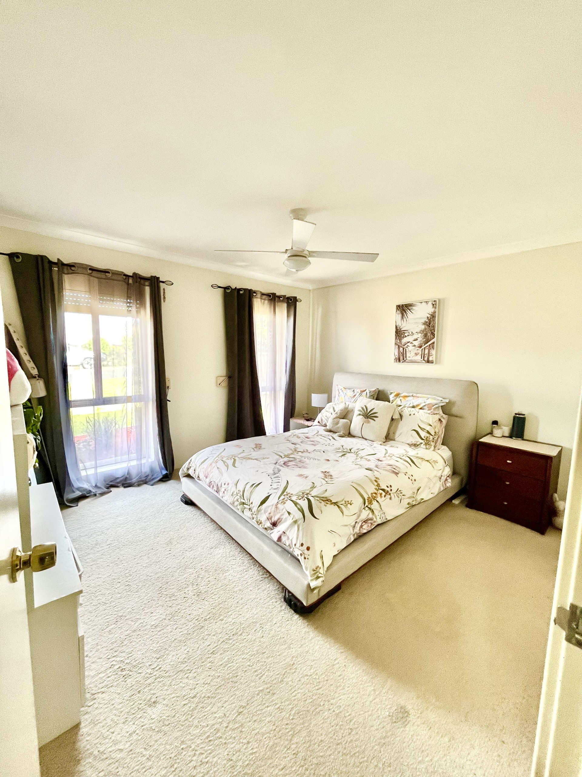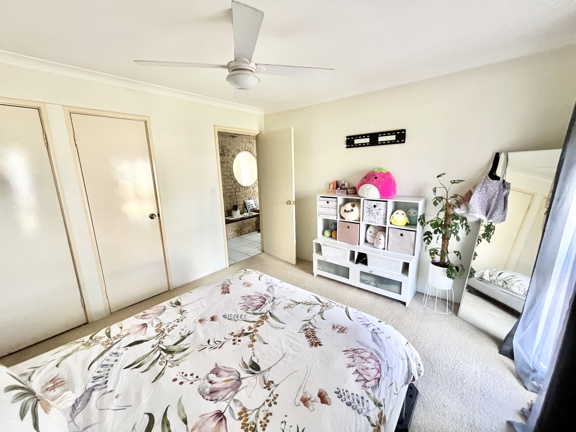 The large master bedroom delights with an ensuite, spacious walk in robe and ceiling fan.