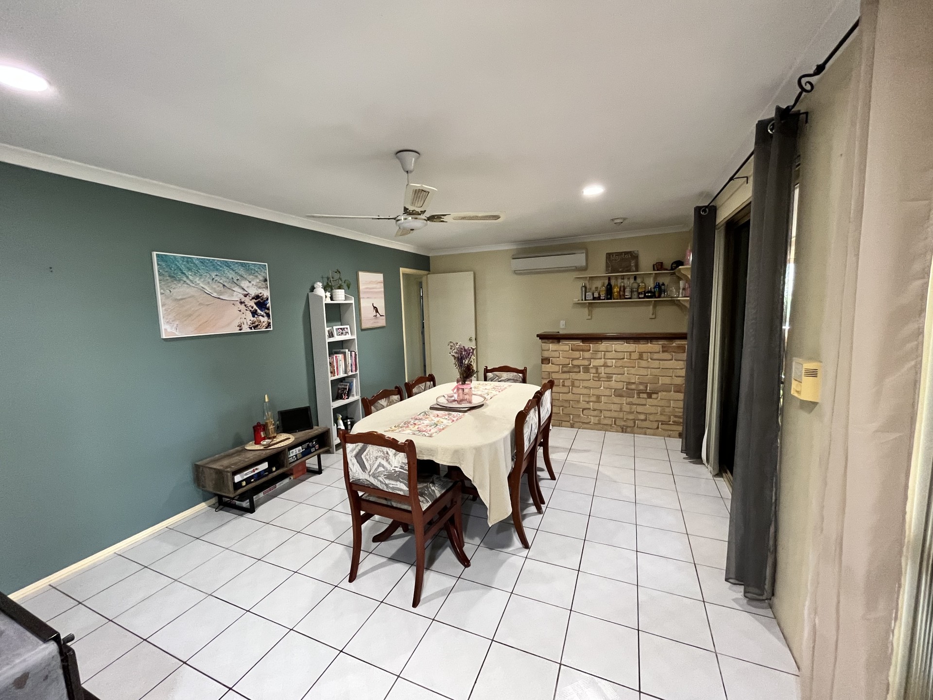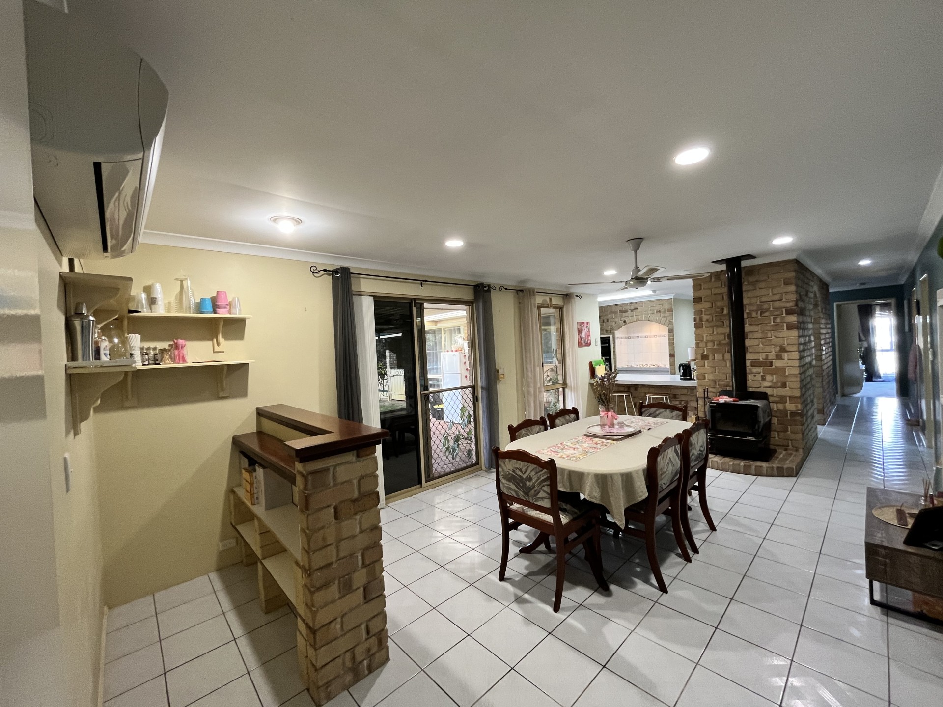 Inside Boasts a log fire place and split system reverse cycle air conditioner keeping you comfortable all year round as well as a bar for when entertaining needs to move inside.