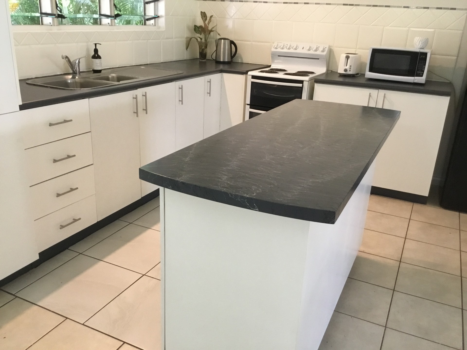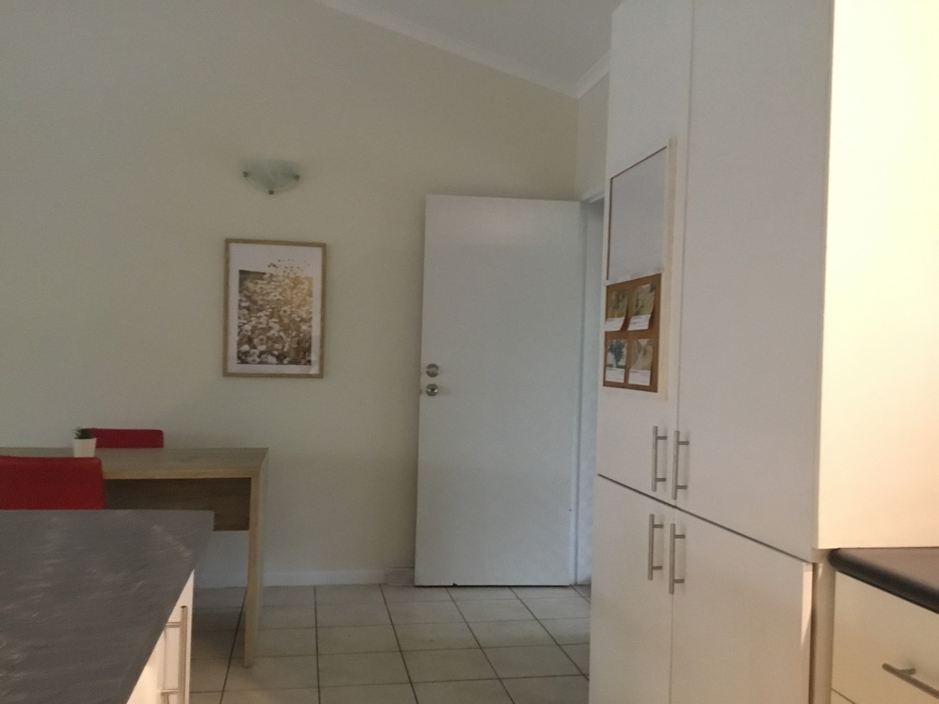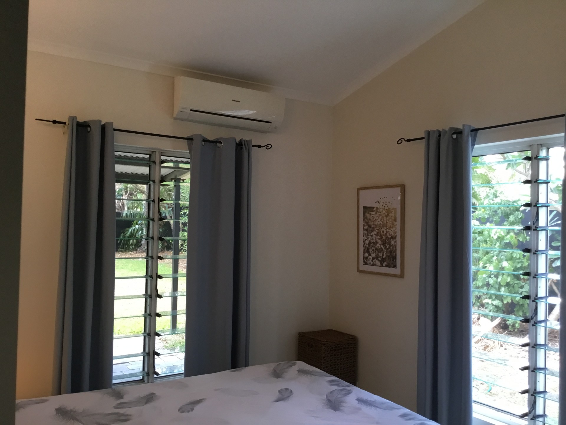Tropical, spacious open plan home with high cathedral ceilings and louvred windows throughout with lots of storage.