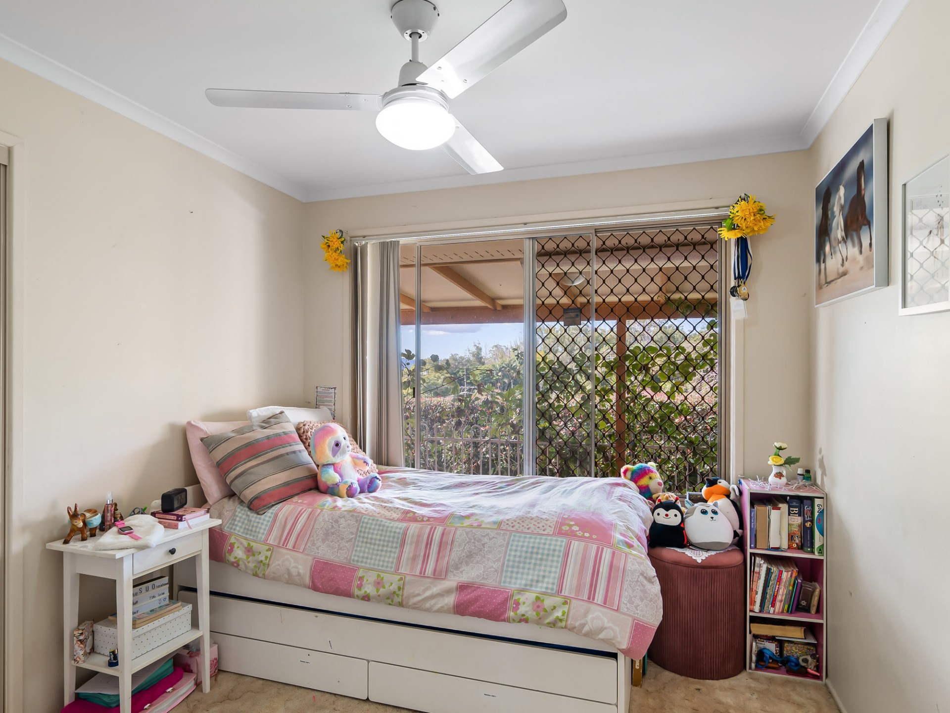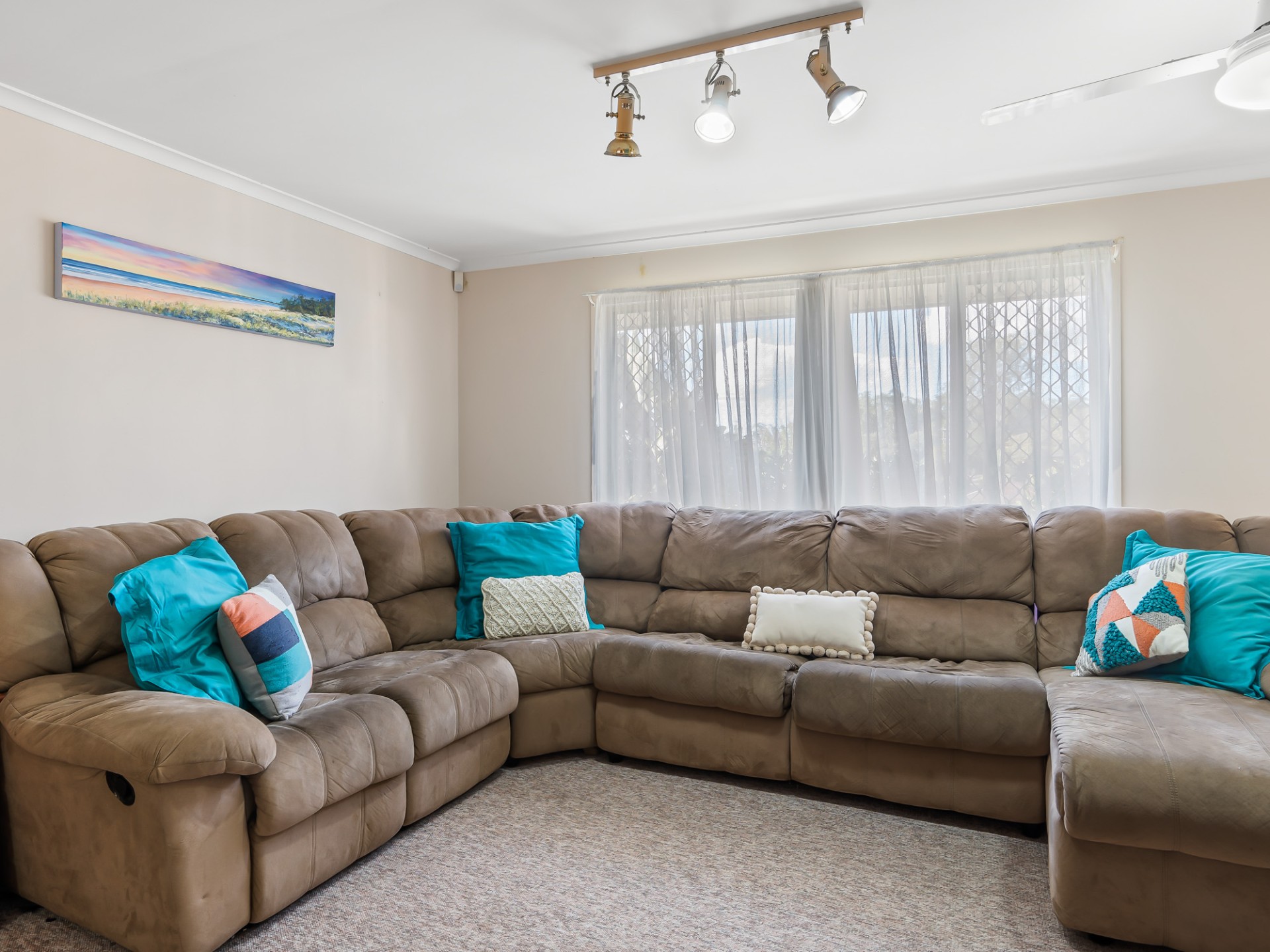 - Ceiling fans in living room and three bedrooms
