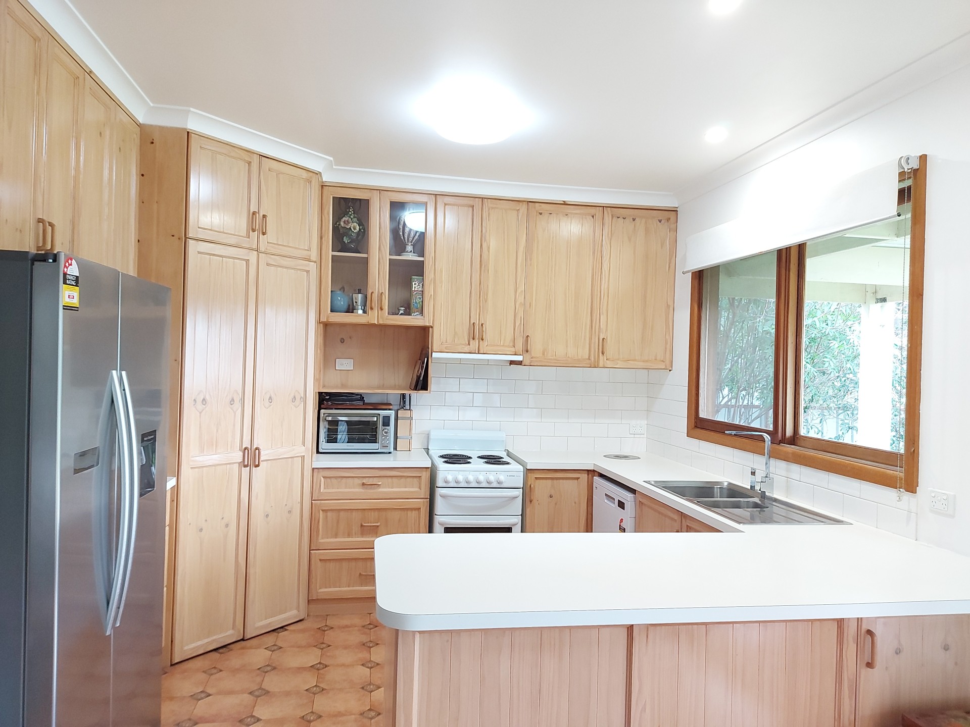 Spacious timber country-style kitchen with ample storage. Electric cooker, large corner pantry, double sink & dishwasher.