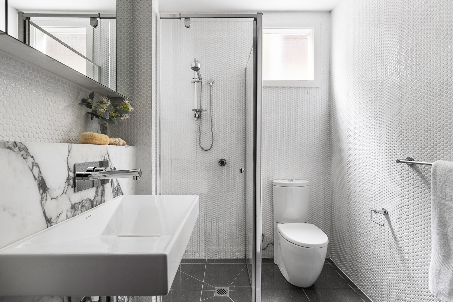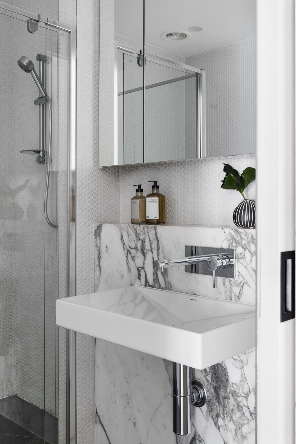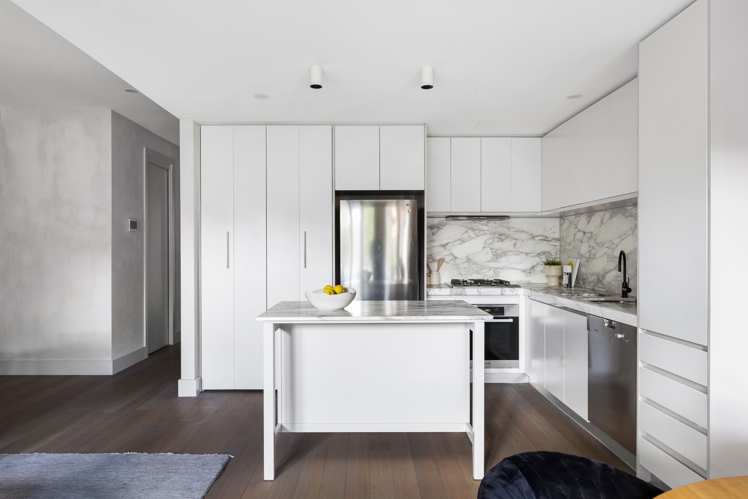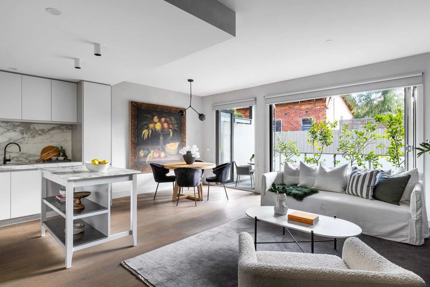 A luxurious kitchen featuring Arabascato Marble benchtops and splash back, Miele appliances, Euro laundry, 2 floor-to-ceiling tiled and Marble Lux bathrooms, Internal Garden/Light Well, Desk/Study area in one of the bedrooms, huge shoe closet at entry, reverse cycle heating and cooling, Bauwerk Limewash paint finishes throughout, Rubio Monocoat timber floorboards, an additional South West facing rear courtyard with access from two of the bedrooms, secure basement parking for two cars, a storage cage and to top it off 24/7 unrestricted free street parking out the front for all your visitors.
