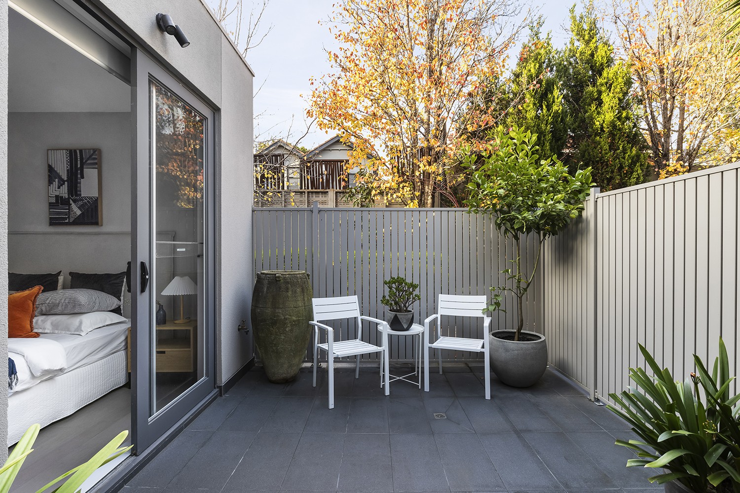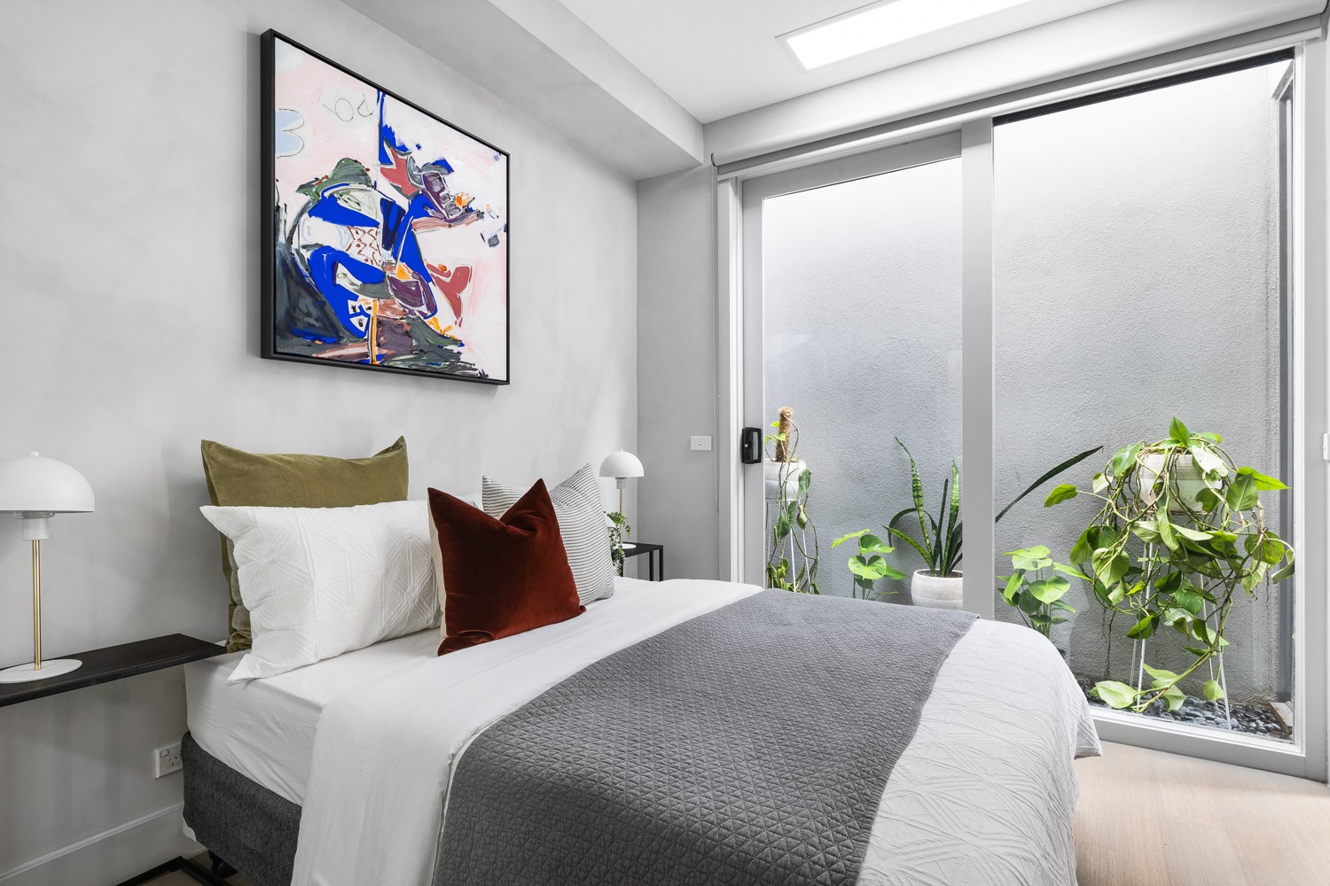 This light-filled, north-facing, ground-floor home is located on a beautiful treelined premium street opposite the St Kilda Botanical Gardens and within walking distance of shops, cafes, restaurants, the beach, and public transport. Nestled in the building behind the beautiful heritage "Himalaya" a modern oasis awaits.