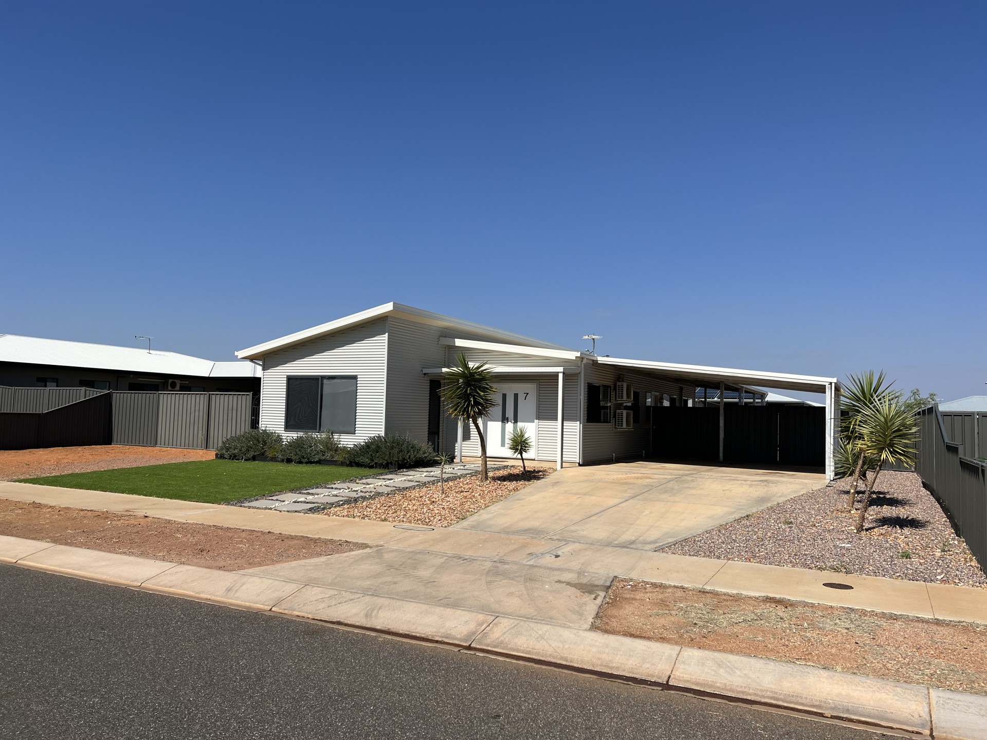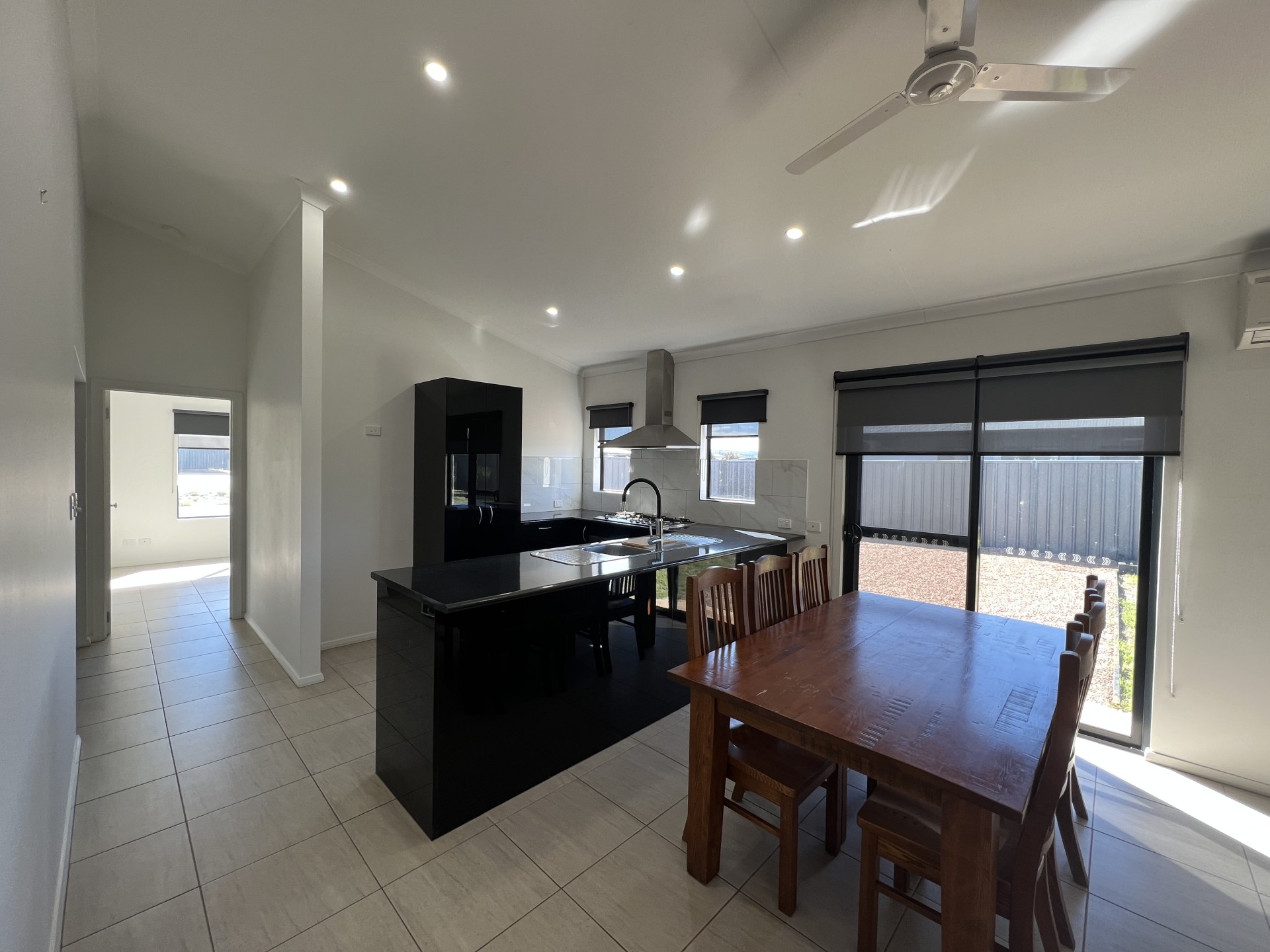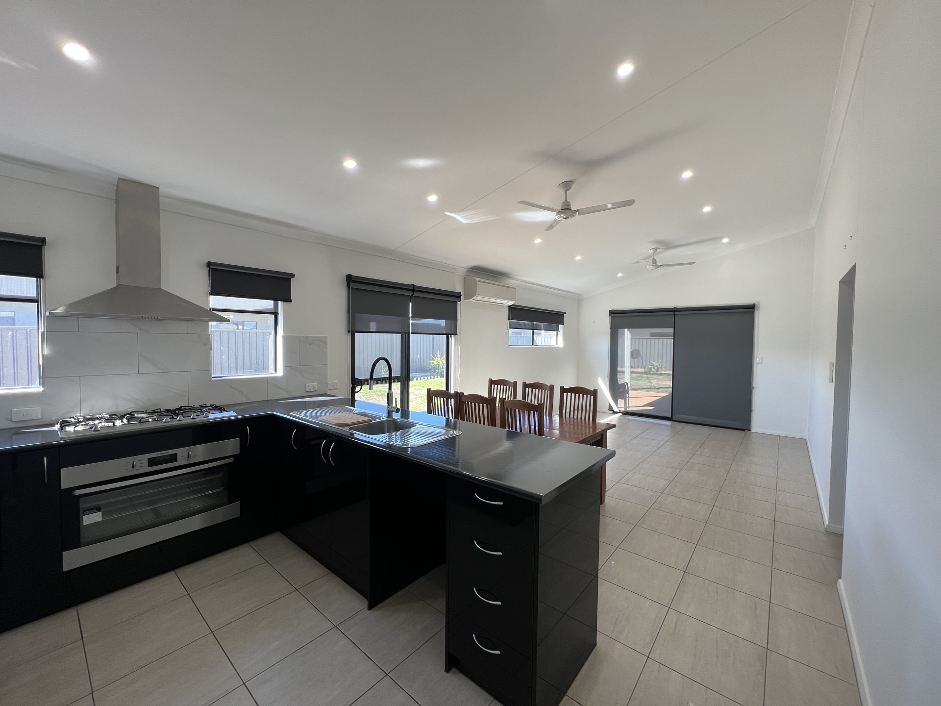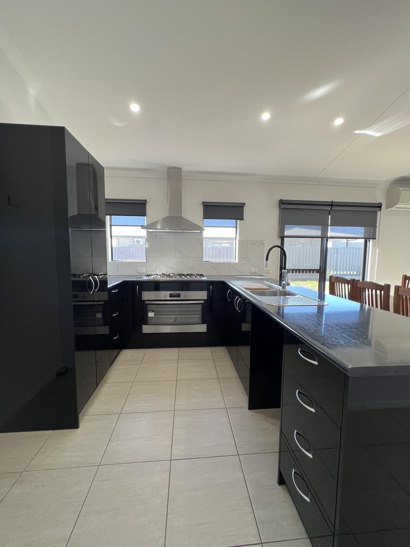 Entering from the low maintenance front yard, the double doors welcome you into the foyer of this fully tiled home. Moving through to the open planned kitchen and living area, featuring a black kitchen with a Westinghouse five burner gas stove top with matching stainless steel range hood and electric oven, the double sink overlooks the remaining of the living area towards the rear yard. This home has Daikin split systems and both sheer and blocks out blinds throughout. The three bedrooms include built in wardrobes with mirrored doors, the main bedroom features ensuite with toilet, vanity and double rose shower. The spacious fully white main bathroom includes toilet, vanity, shower, featuring a 305L free standing bath. The front yard includes room for off street parking and a double carport with double gates entering the rear yard. The spacious rear yard includes an alfresco, stoned fire pit area, large grass area with a raised garden bed and open rocked area with a garden shed.