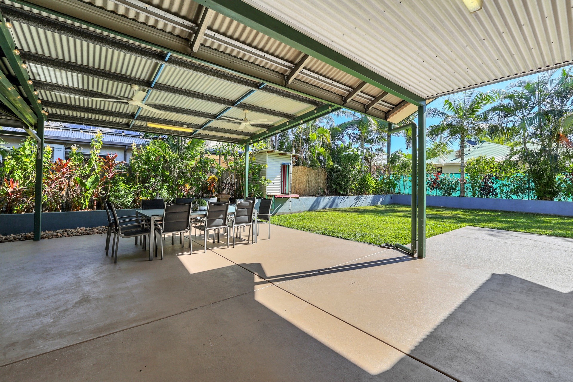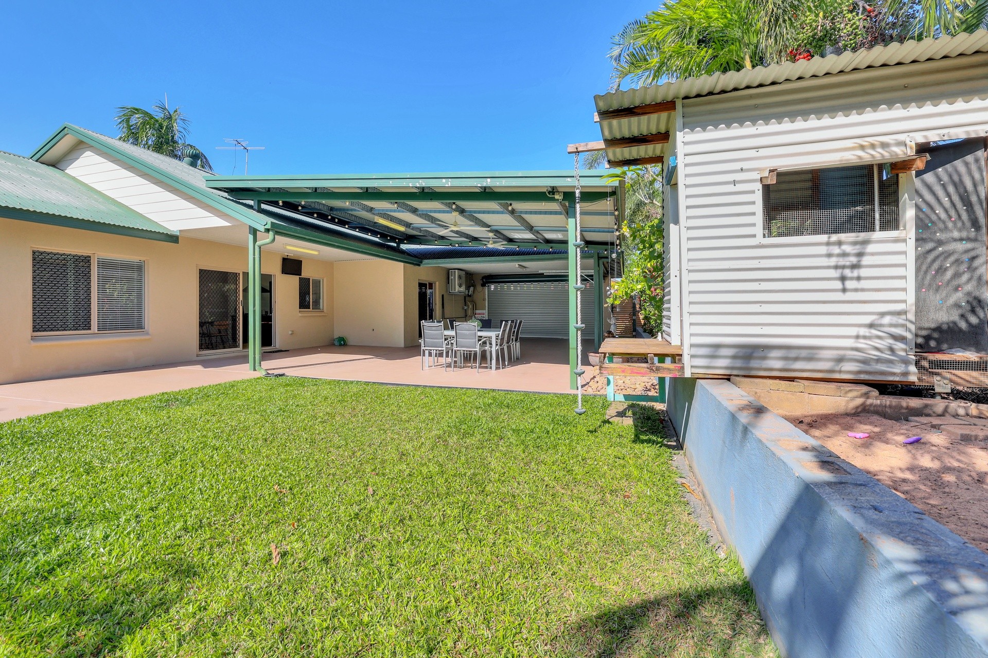 - Large undercover outdoor area (certified extension) with festoon lighting, outdoor TV,