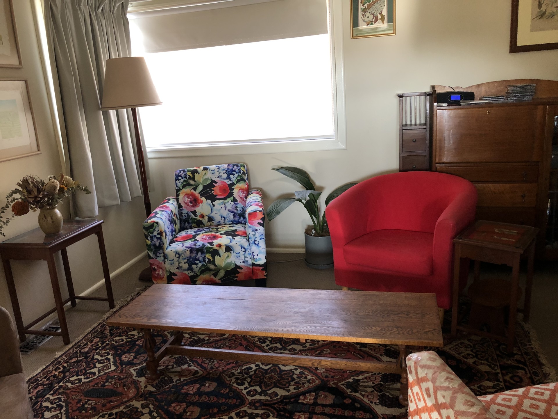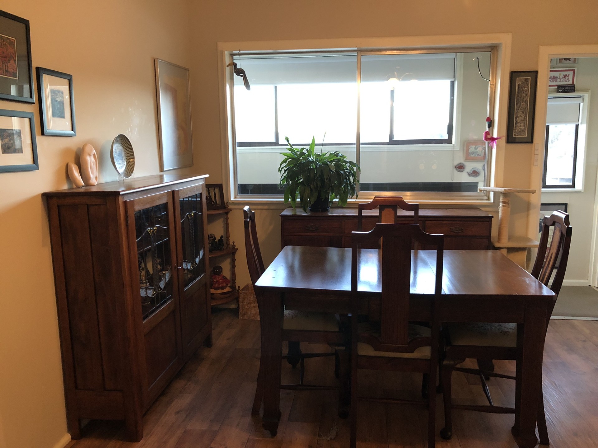 North facing cottage - two bedrooms, both with built-ins, plus large rumpus room/studio with beautiful light. One bathroom plus separate toilet, one carport. Updated kitchen, solar panels, store room/workshop. Garden shed, shade house, raised veg beds, fruit trees. Pretty front garden, lovely views.
