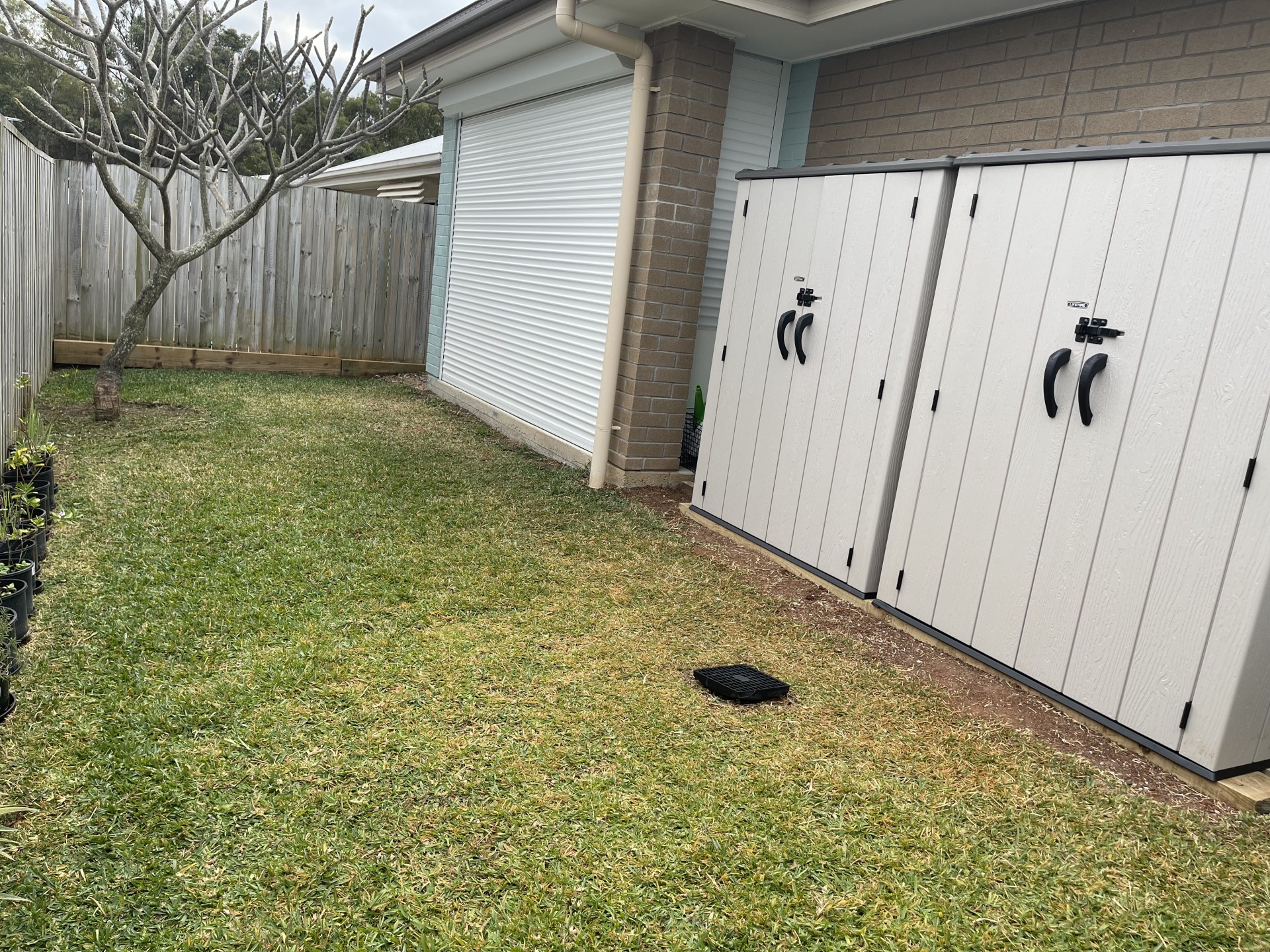 • TWO attractive PVC, slim-line storage sheds that house your garden equipment is installed under the rear eaves.
