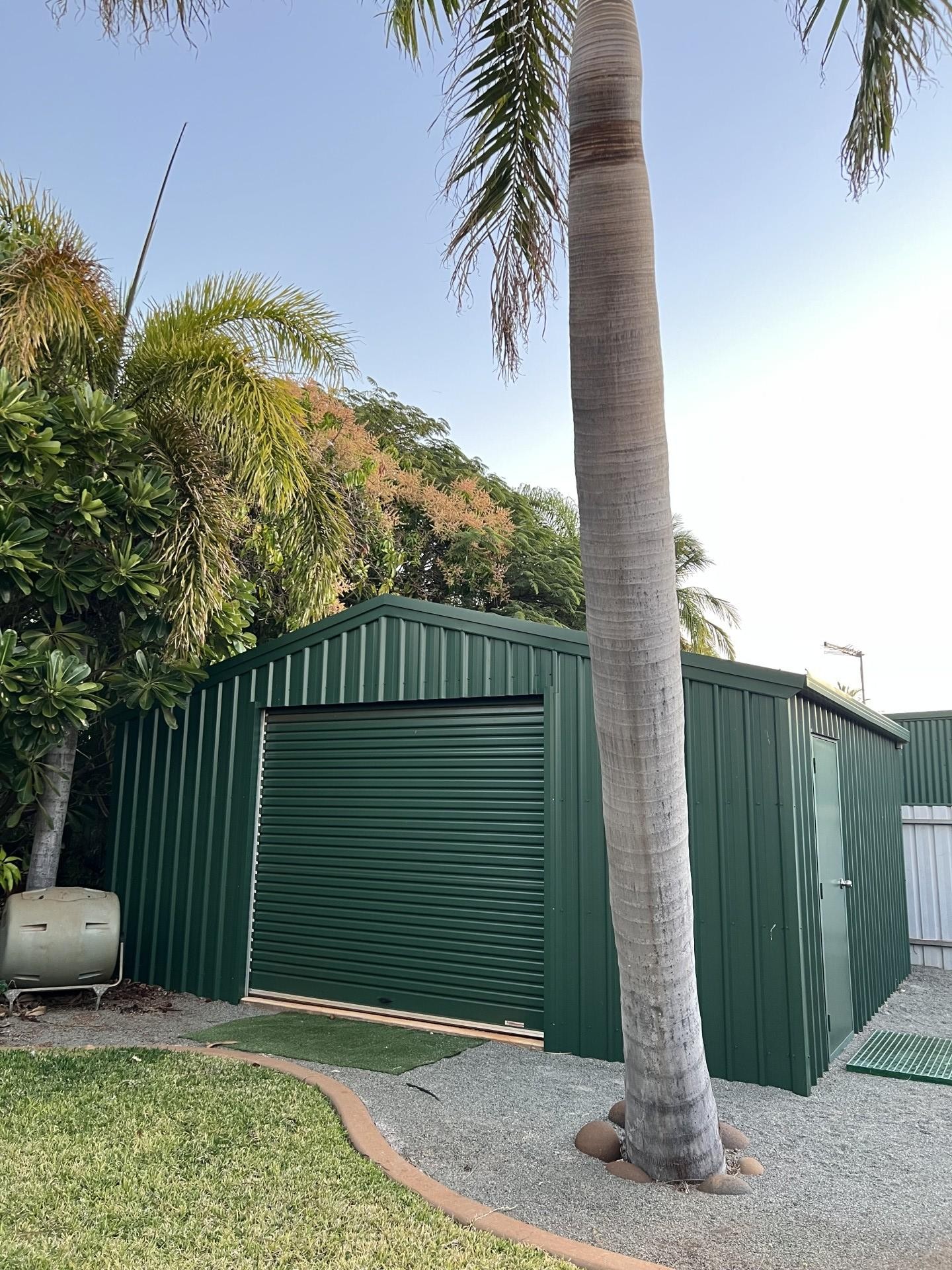 • 6m x 5m powered shed with roller and pedestrian door, split air conditioner and TV aerial connection.