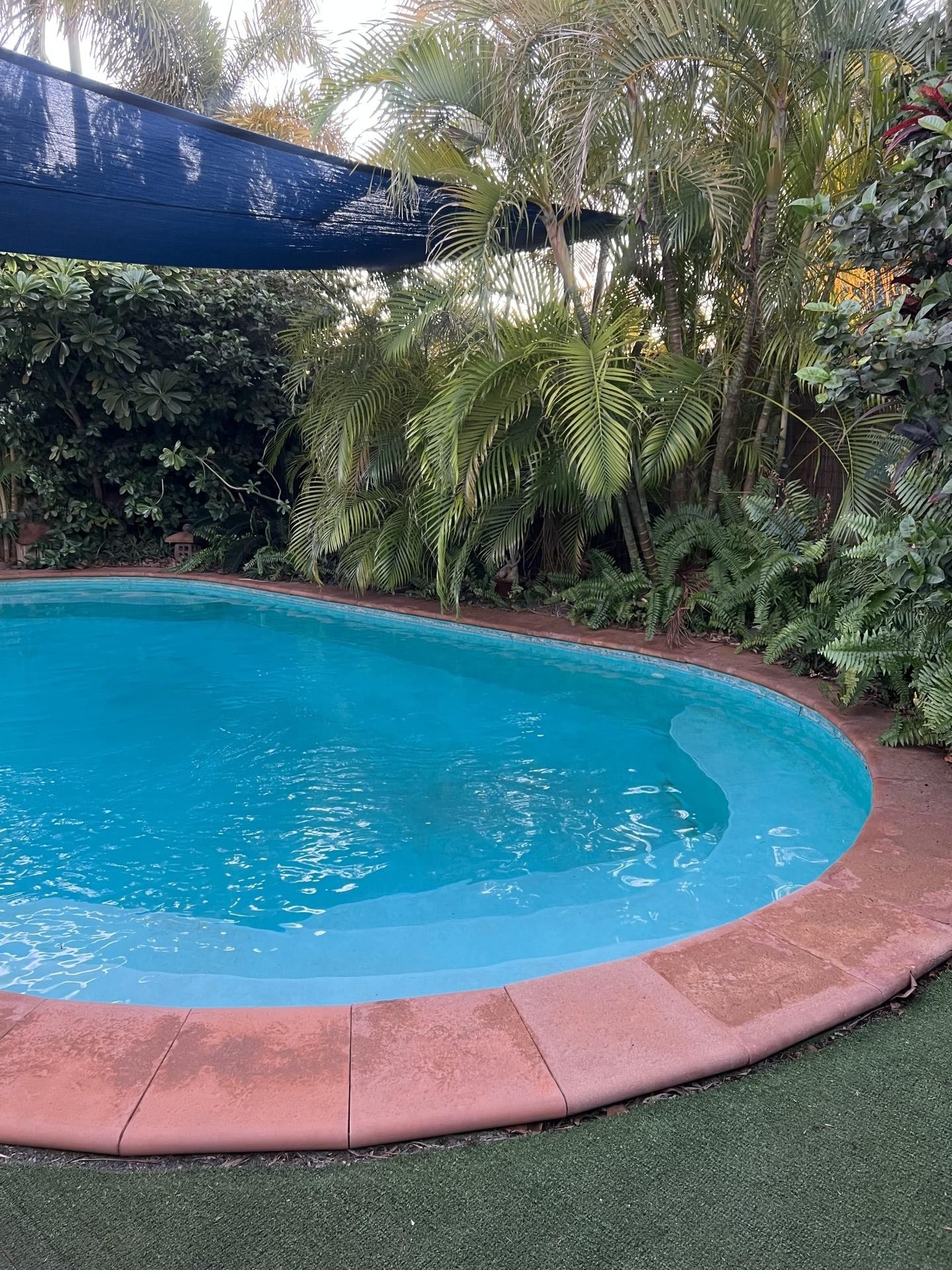 • Fully fenced below-ground pool with salt chlorinator, surrounded by tropical gardens and an outdoor shower
