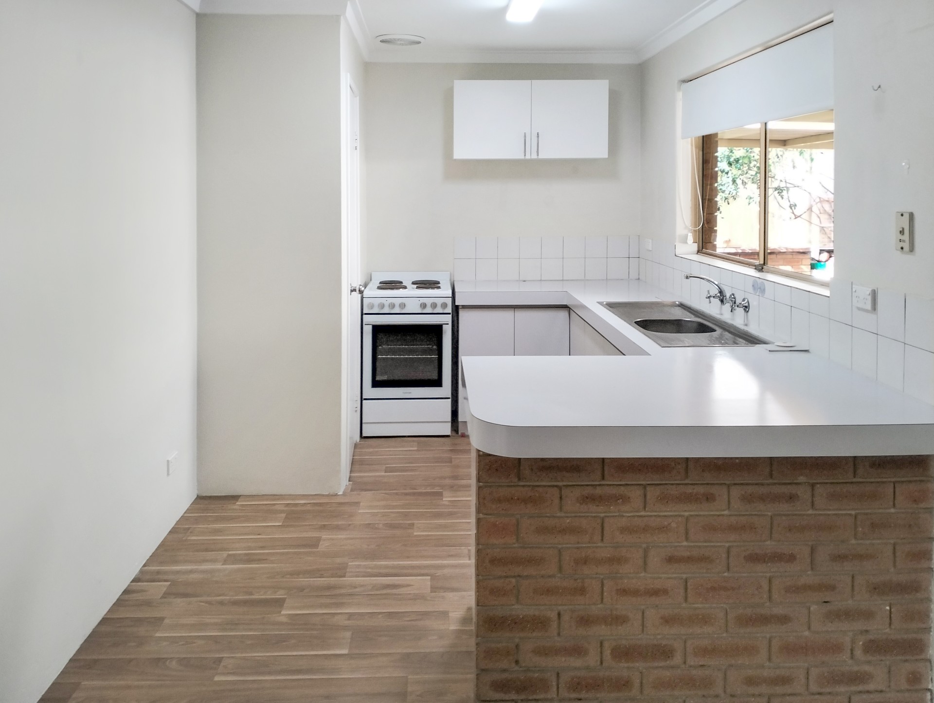 * Kitchen has an electric stove, pantry and ample cupboards.