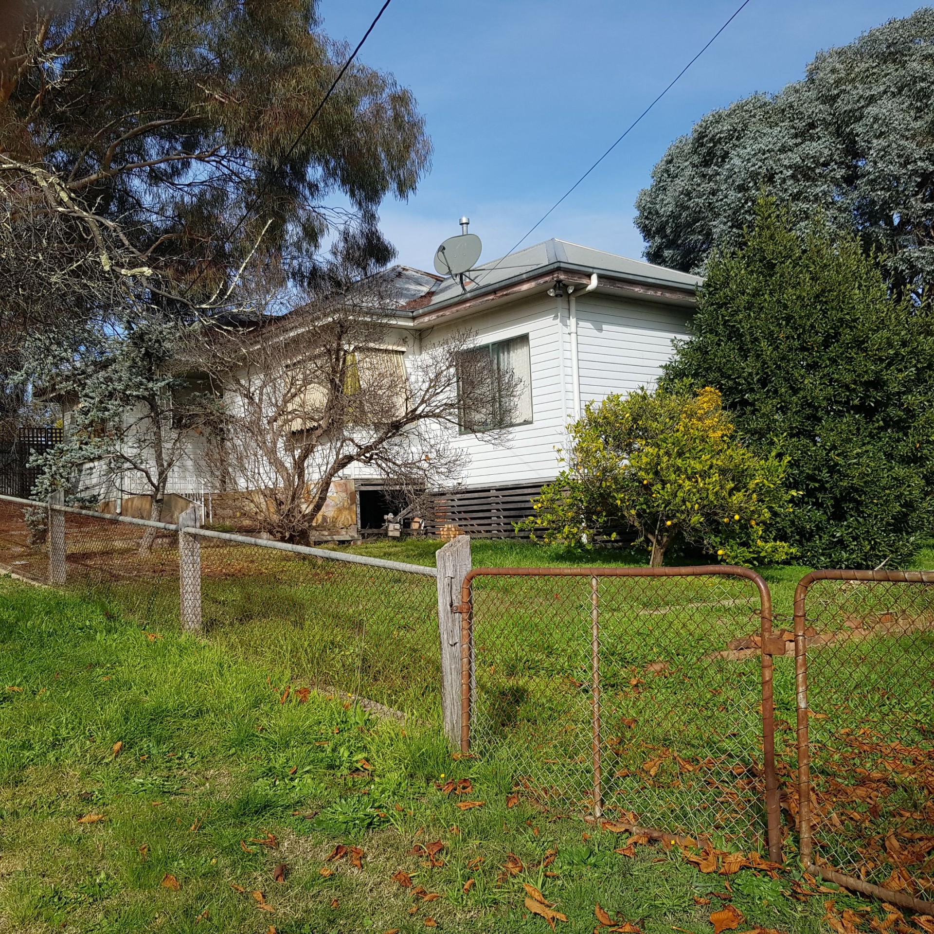 This corner allotment hosts a two-bedroom weatherboard house, built circa 1962. The block is approximately 945-sqm and includes a large 130-sqm lock-up garage.