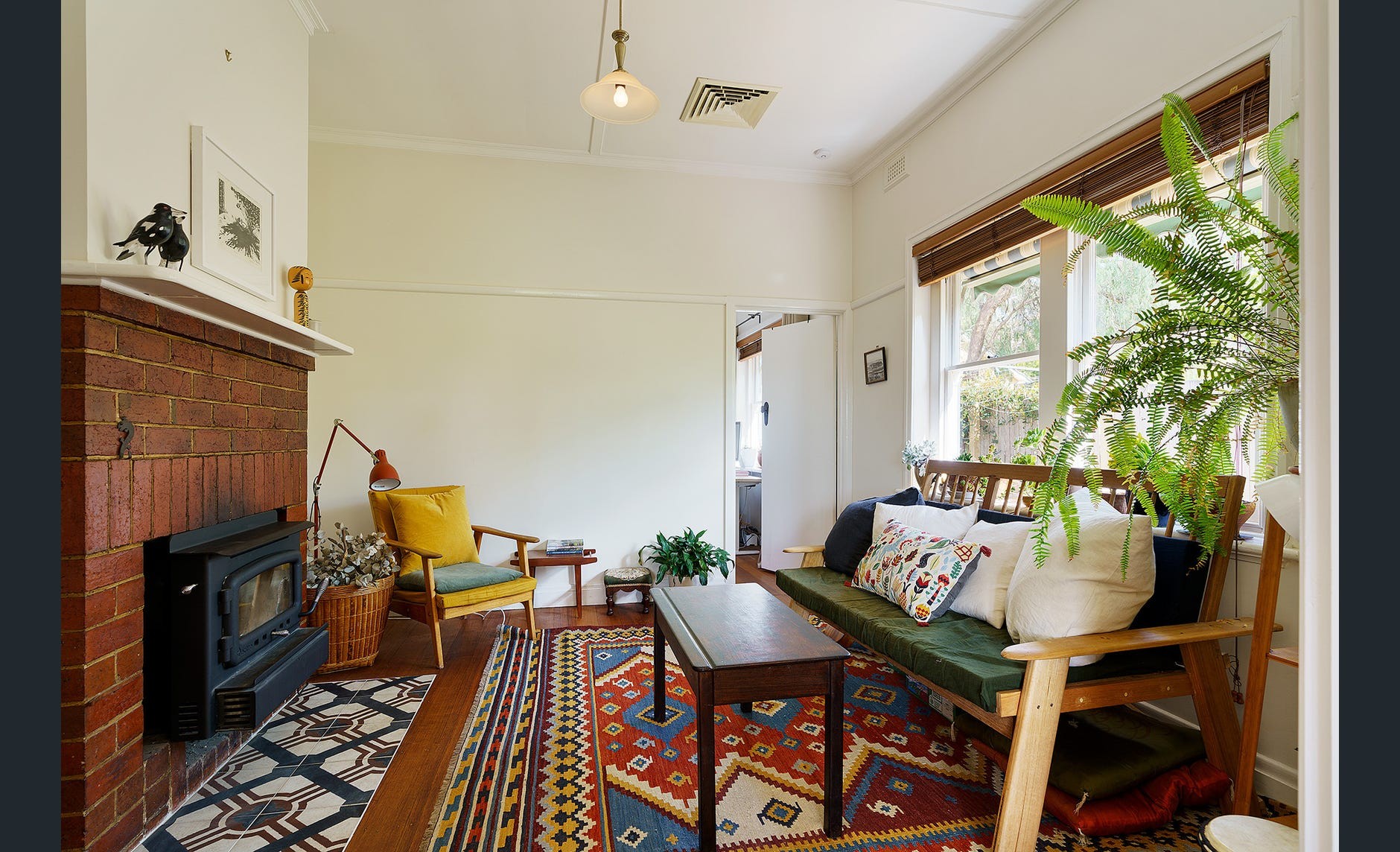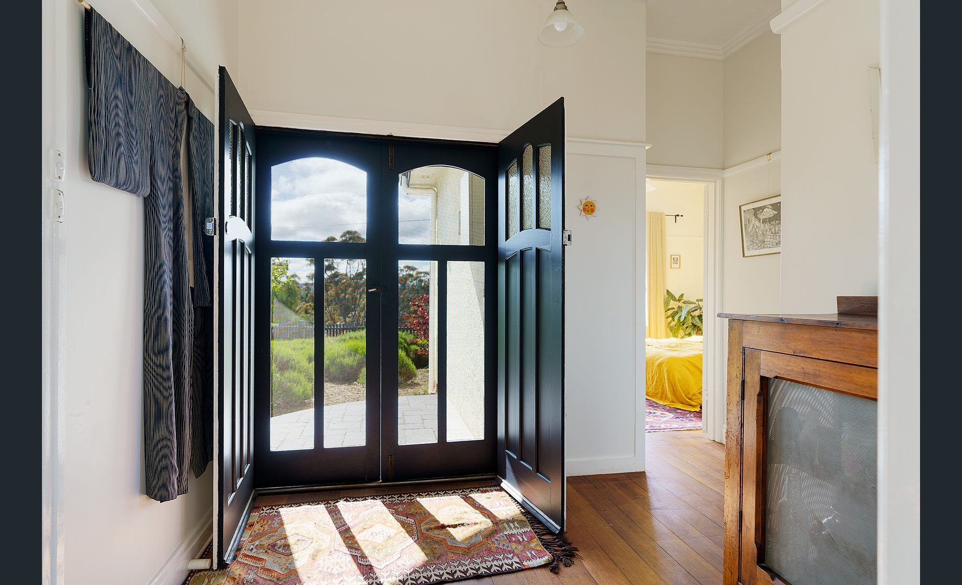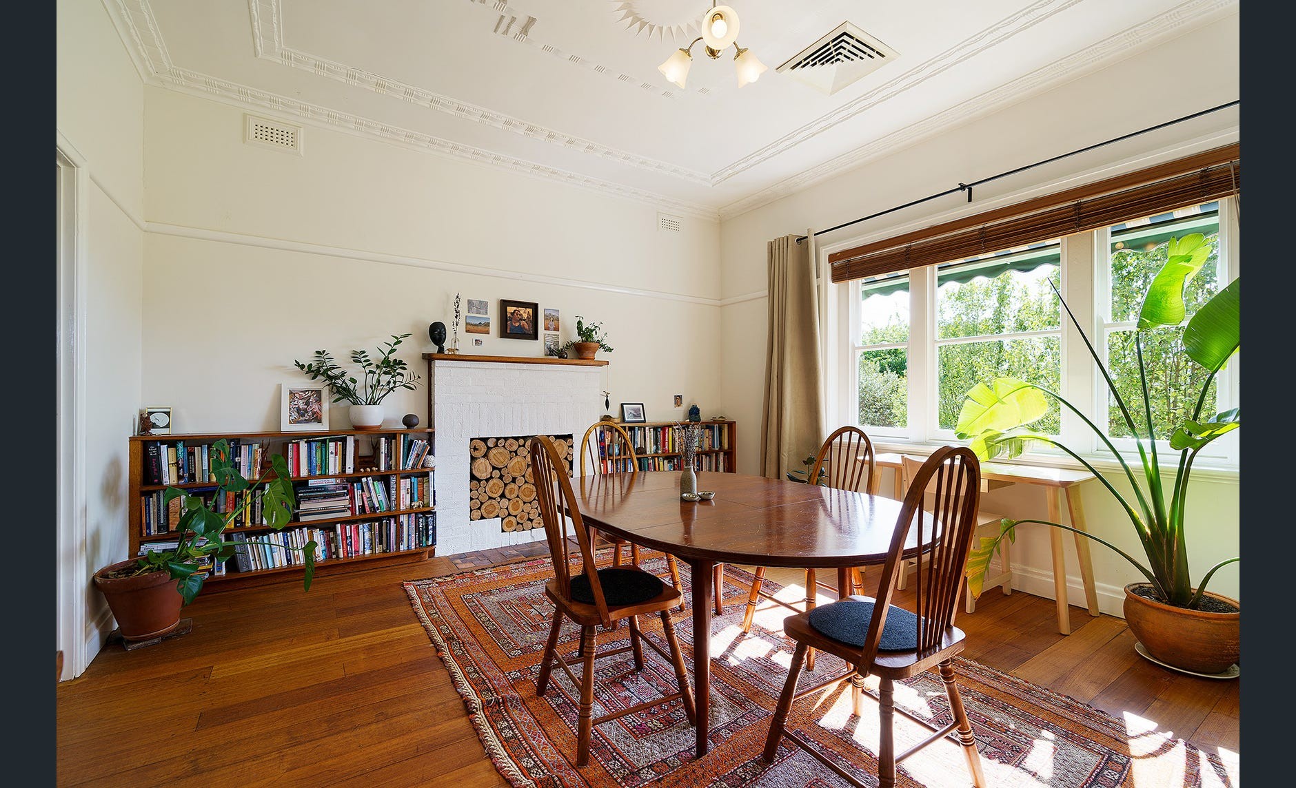 The home sits within a combined planting of an indigenous, ornamental, and productive garden. The floorplan consists of an entry foyer that leads to the dining room with views and the original fireplace, a north-facing living room with a solid wood heater, three bedrooms, one with wall-to-wall robes and the main with ensuite and built-in robes and a family bathroom. Central to the home is the kitchen with a dishwasher, a gas cooktop and an electric oven; and adjoining this space is a study/children's play area & laundry. The home has period features including high, decorative ceilings and polished floorboards.