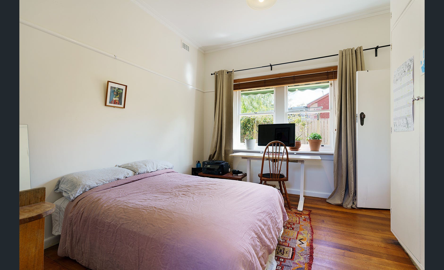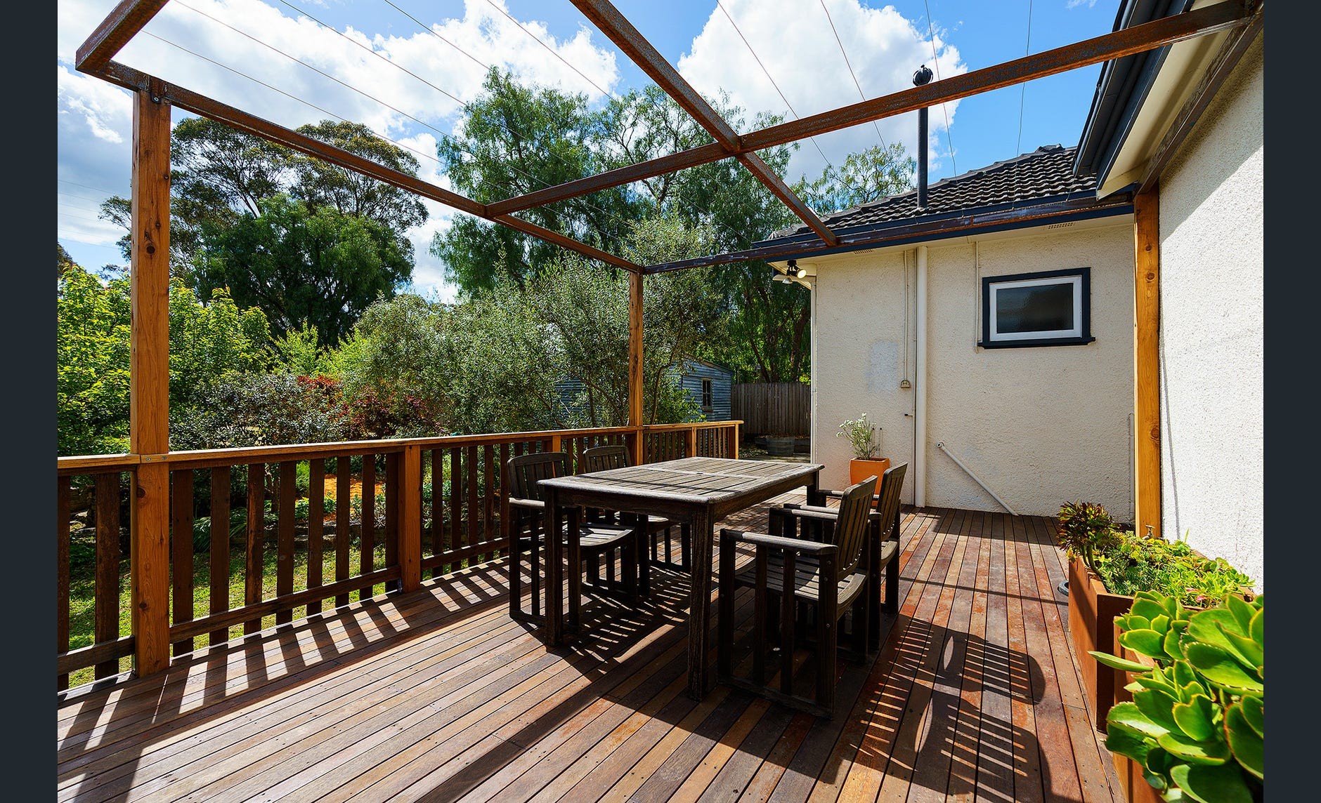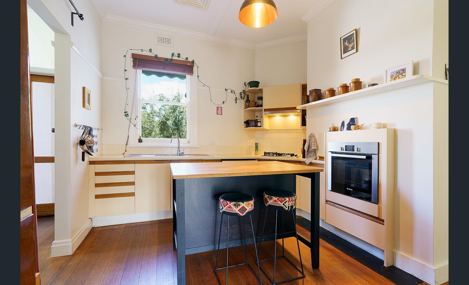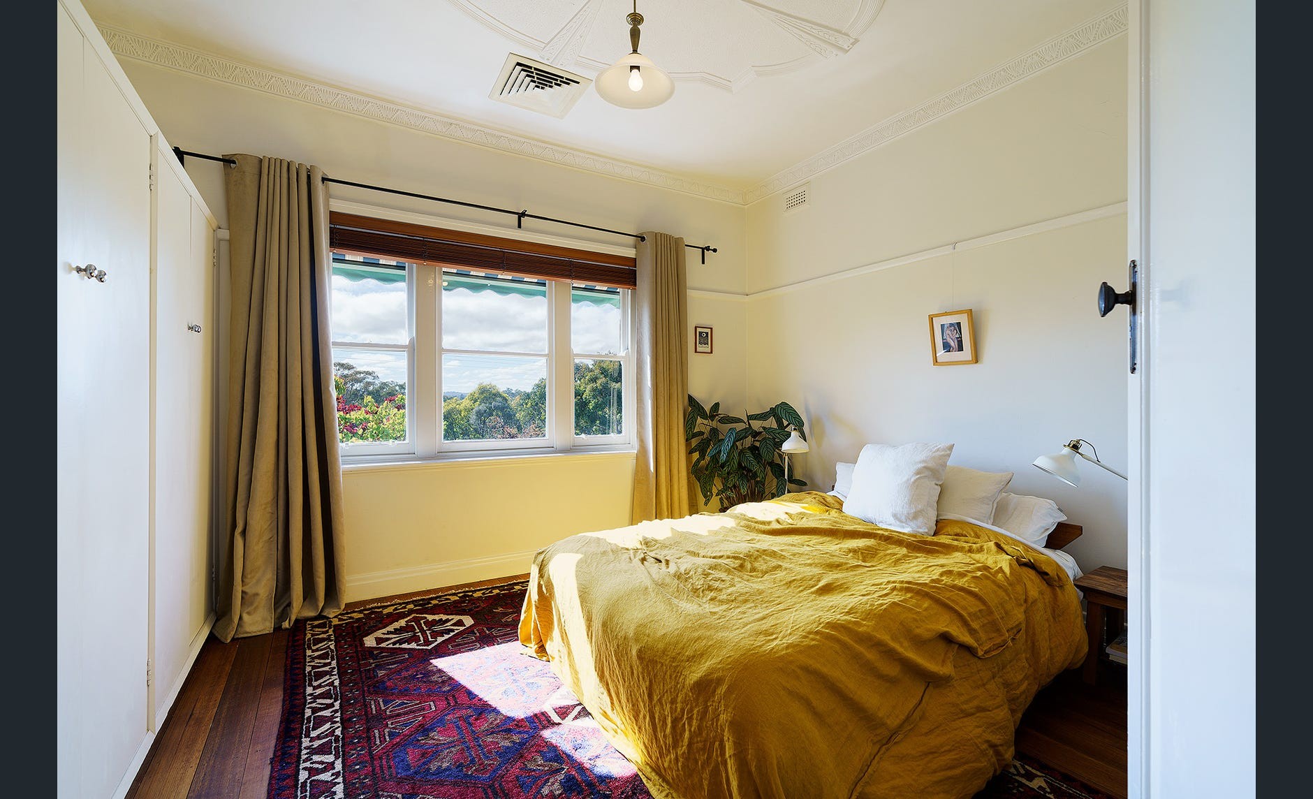 The home sits within a combined planting of an indigenous, ornamental, and productive garden. The floorplan consists of an entry foyer that leads to the dining room with views and the original fireplace, a north-facing living room with a solid wood heater, three bedrooms, one with wall-to-wall robes and the main with ensuite and built-in robes and a family bathroom. Central to the home is the kitchen with a dishwasher, a gas cooktop and an electric oven; and adjoining this space is a study/children's play area & laundry. The home has period features including high, decorative ceilings and polished floorboards.
