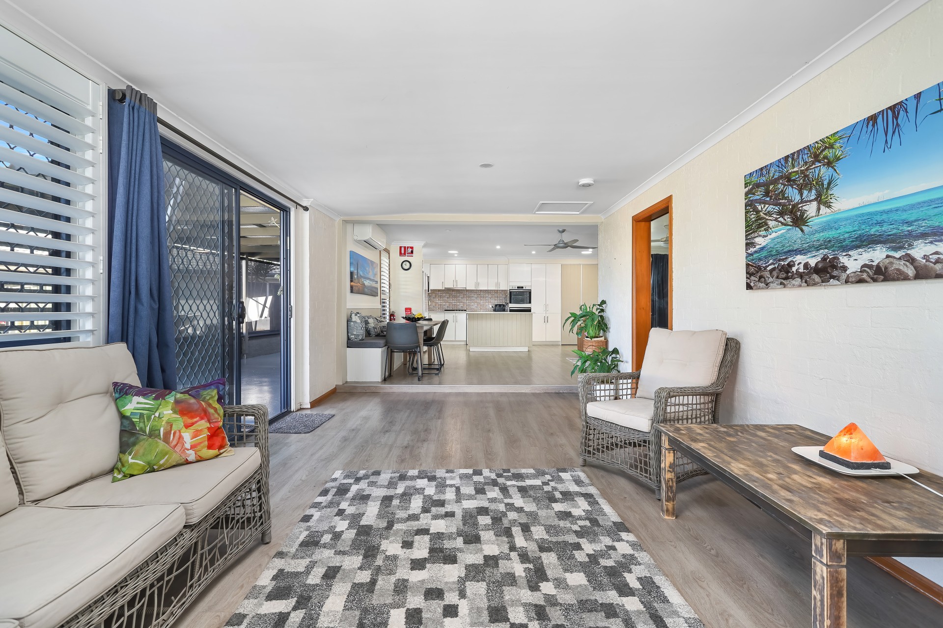 This large 3 bedroom 2 bathroom duplex has two living areas with a sunroom that overlooks the beautiful Tweed River beach just across the road. The home has a lovely outdoor area with outdoor seating and a beautiful veggie patch and garden.