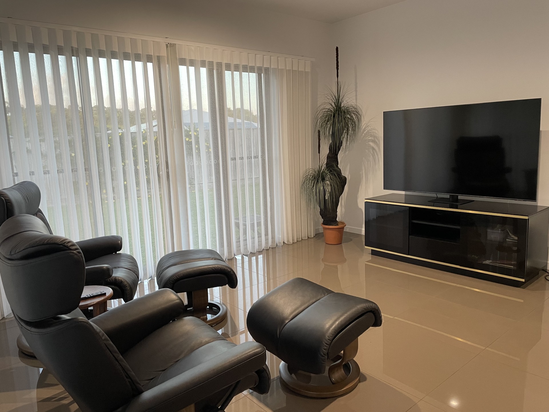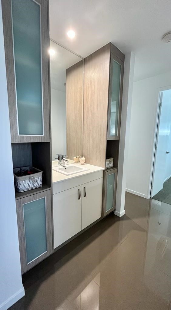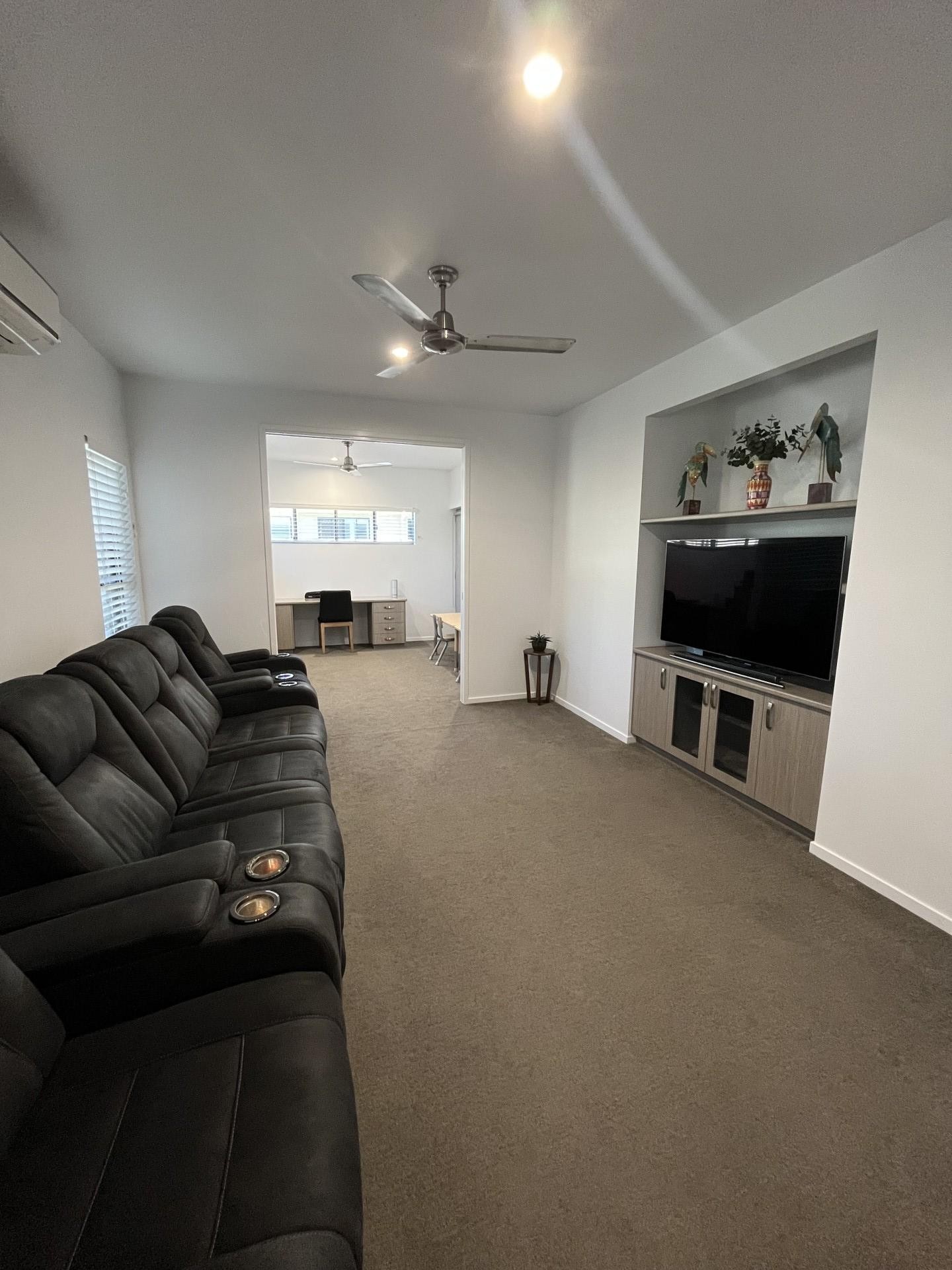 The Media/Lounge Room is a great place to relax. The TV space is recessed into the wall with a storage cupboard below. If used as a Media Room, the sliding doors on either side allow it to be totally closed off from adjoining rooms.