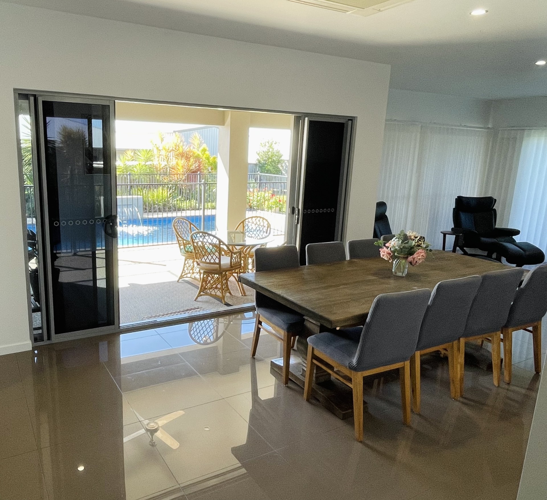 Stepping into the home you will be immediately impressed with the open plan design, modern tones and neutral finishes. The kitchen, dining and living areas merge seamlessly through large sliding doors to the patio and pool areas and also to the backyard making a very large indoor-outdoor entertaining area.