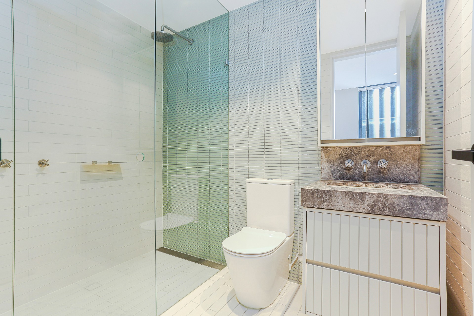 • Custom wall-mounted taps and joinery
