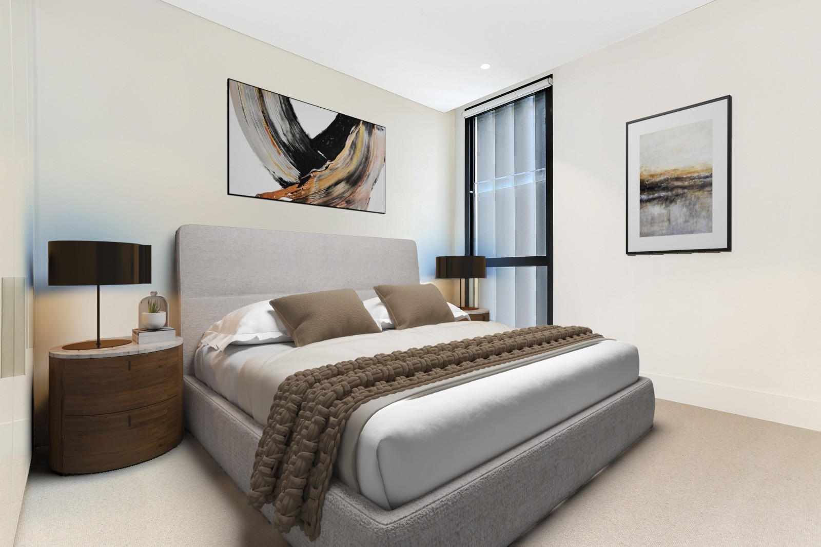 This distinctive two-bedroom apartment showcases spacious bedrooms equipped with built-in robes, with the master bedroom boasting a stylish ensuite. Designed with elegance at its forefront, this high-end luxury apartment displays impeccable attention to detail with its sleek curves and bronze exterior accents.