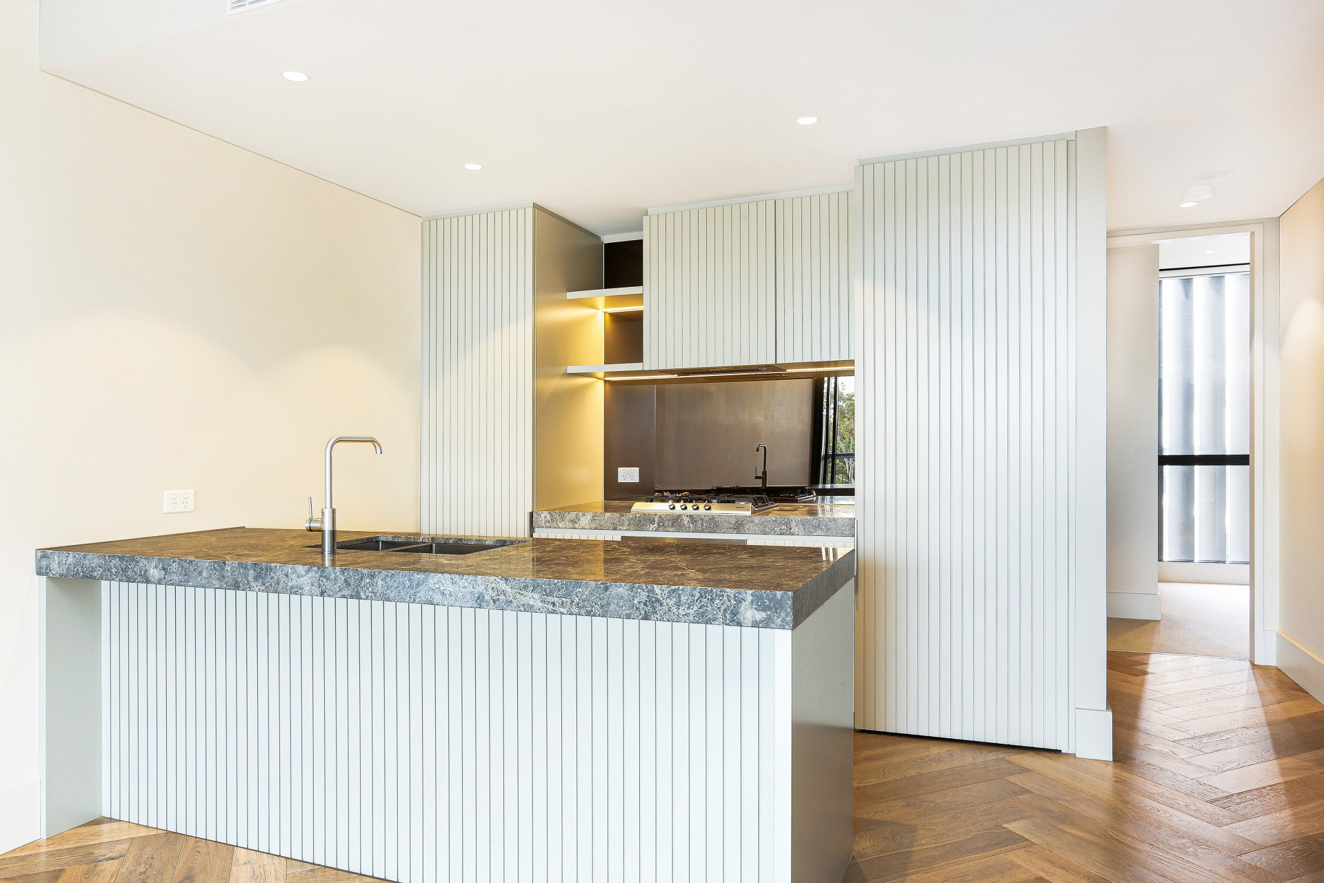 Recognised as a stunning blend of style and practicality, the apartment features opulent stone dining counters and custom joinery, providing all the desired modern amenities and updates.