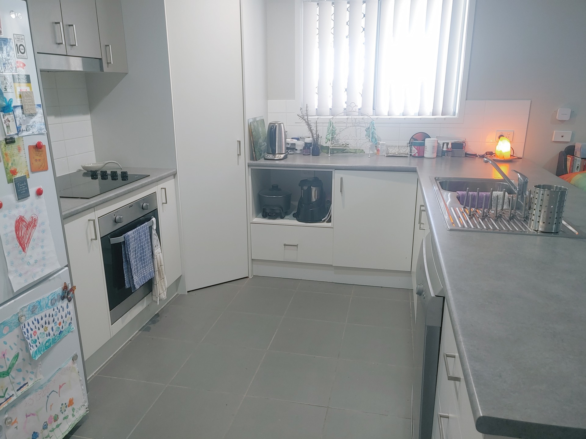 Plenty of storage is another great feature of this home, with double cupboards near the family bathroom as well as facing the kitchen. Humidity is never an issue, as the laundry with plenty of shelving has access to the outside.