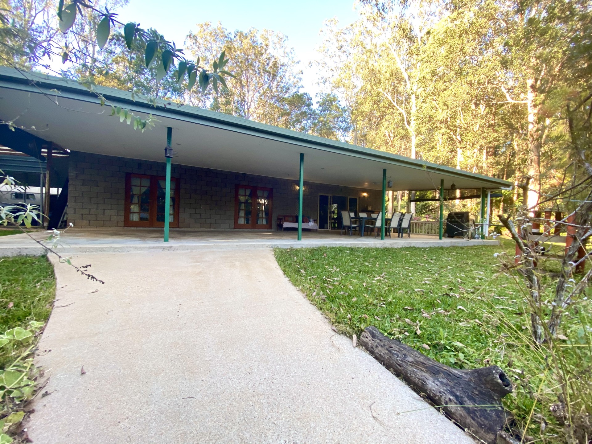 This 3 bedroom block home is nestled amongst beautiful bushland with utmost privacy with no neighbours in sight .