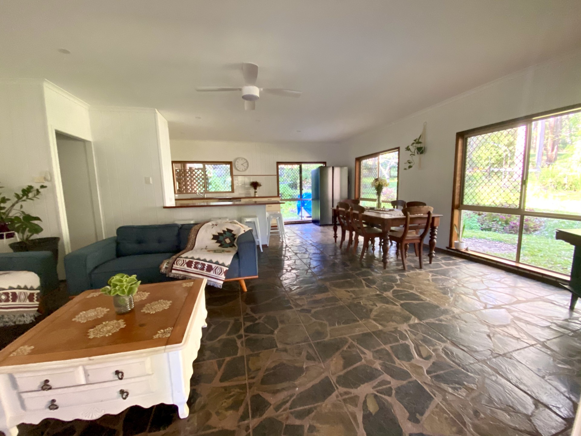Two of the rooms opening up to the large 6x14 outdoor entertaining area, overlooking the timber deck and it's gorgeous bushland views.
