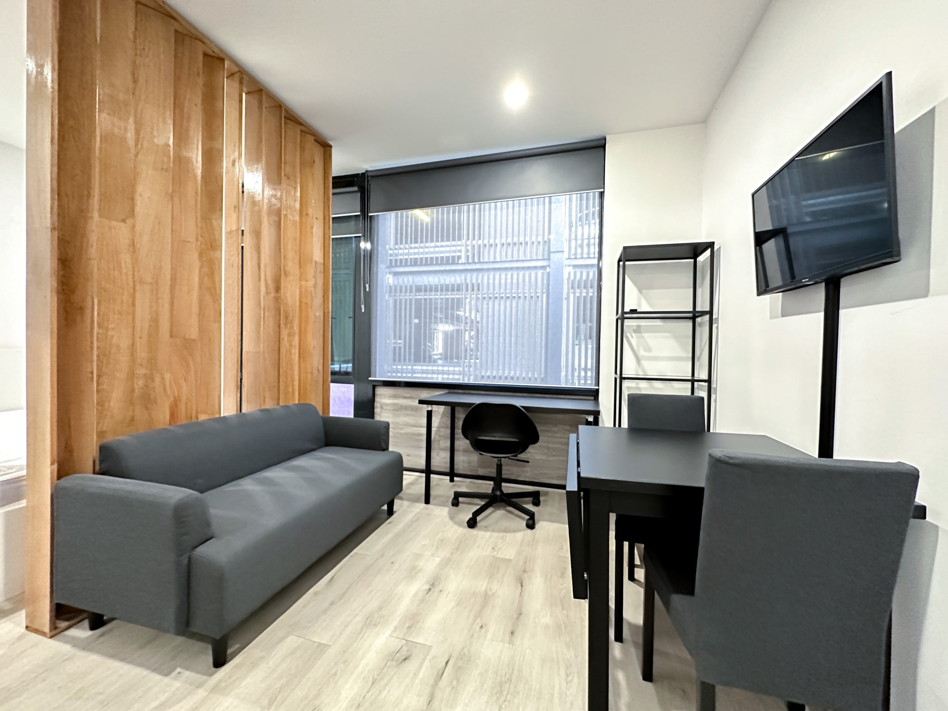 This fully furnished apartment is ideal for city living. A double bed frame, heating and a portable cooler, a dining table and chairs, your own private balcony, a modern bathroom, communal laundry facilities, and a rooftop deck are all included.