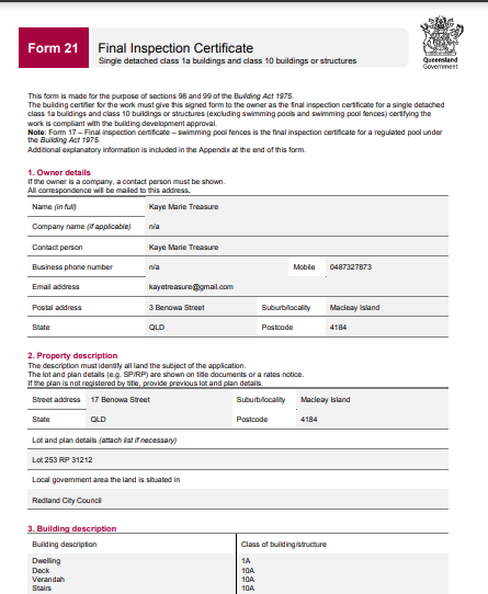 Being the Owner Builder, I have kept all the pictures of the build and all the paperwork so the new owner has a record of everything.