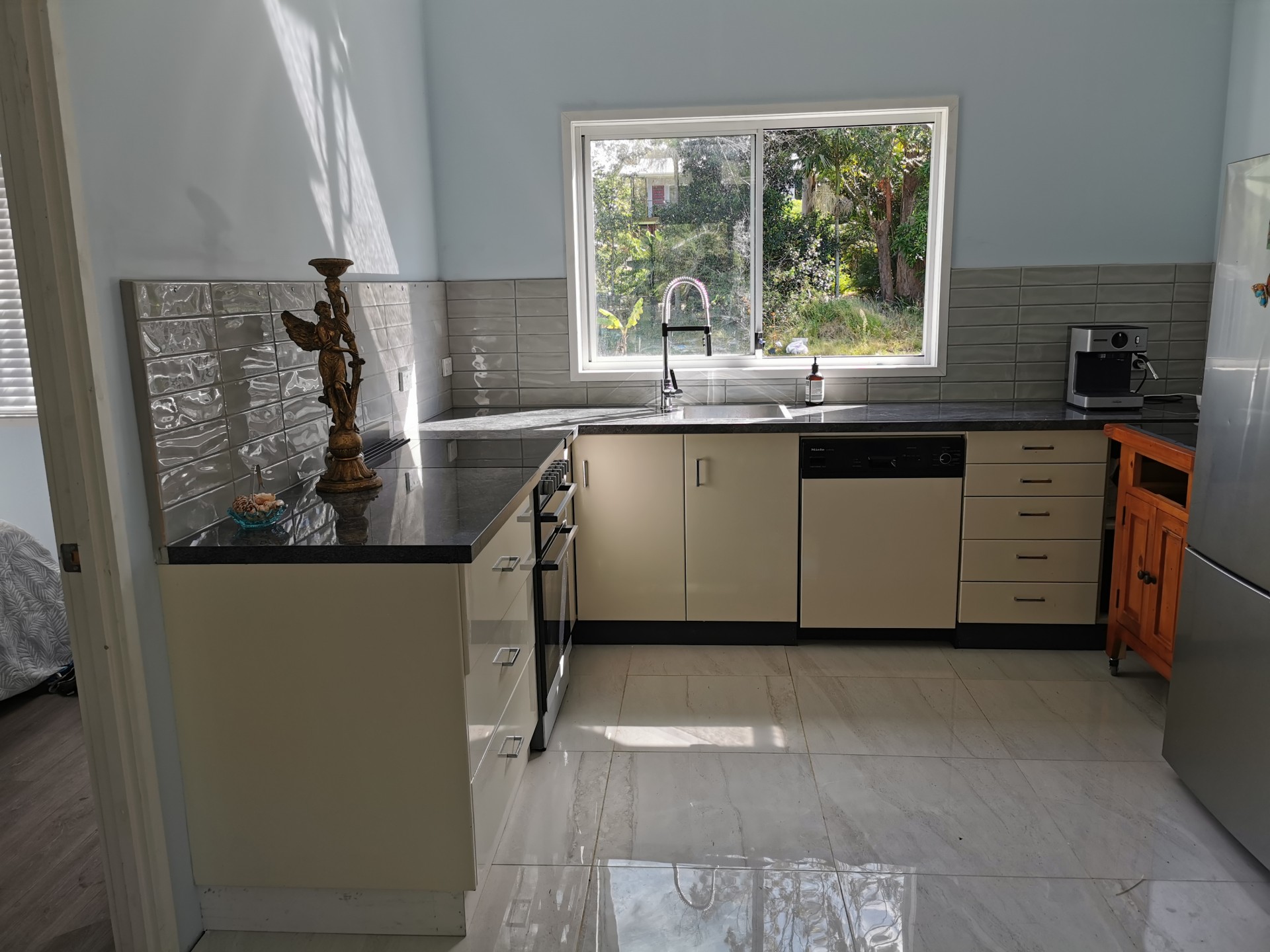 The Lounge Dining and Kitchen have very high ceilings and all look out to the front deck and the forest. The kitchen and laundry both have a dishwasher, just in case you have guests camping out the back they can use these facilities too without having to come into the house. The Hotwater System is a Dux which is suitable for 4-6 people.