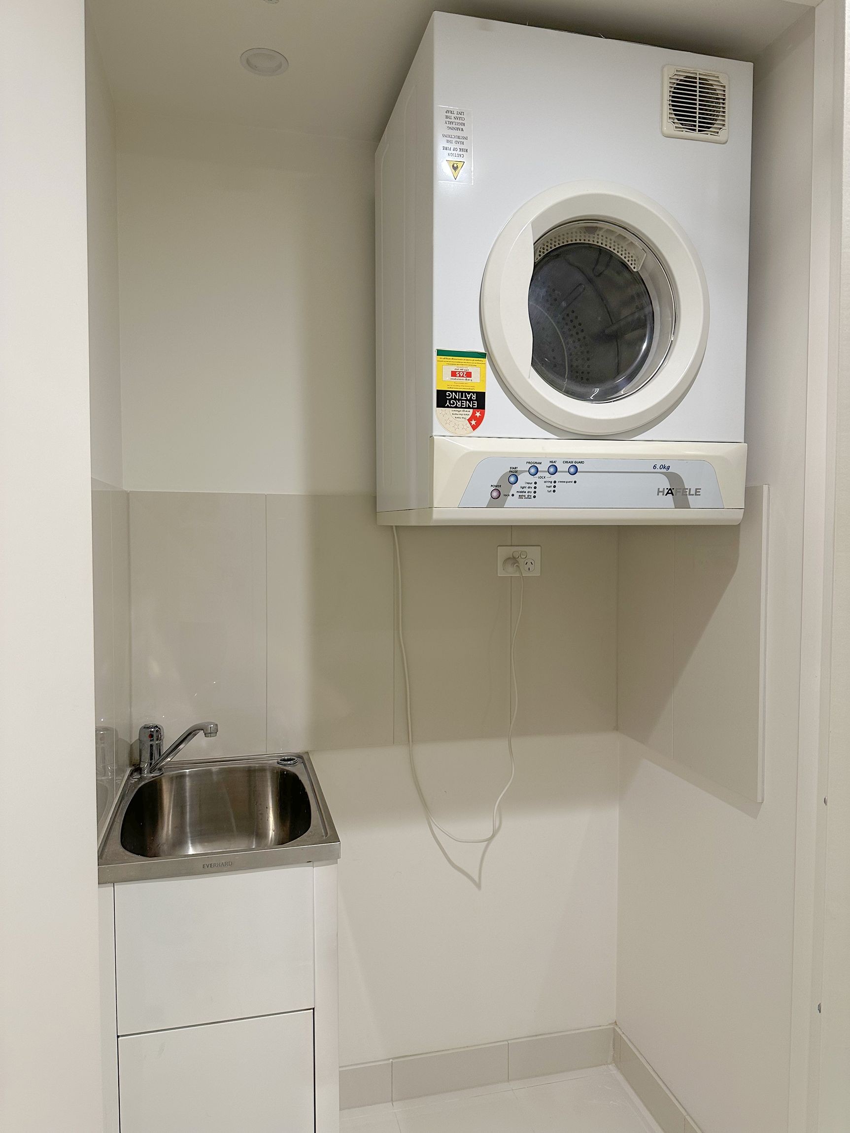 • Laundry enclosed in the bathroom, fitted with sink and clothes dryer.