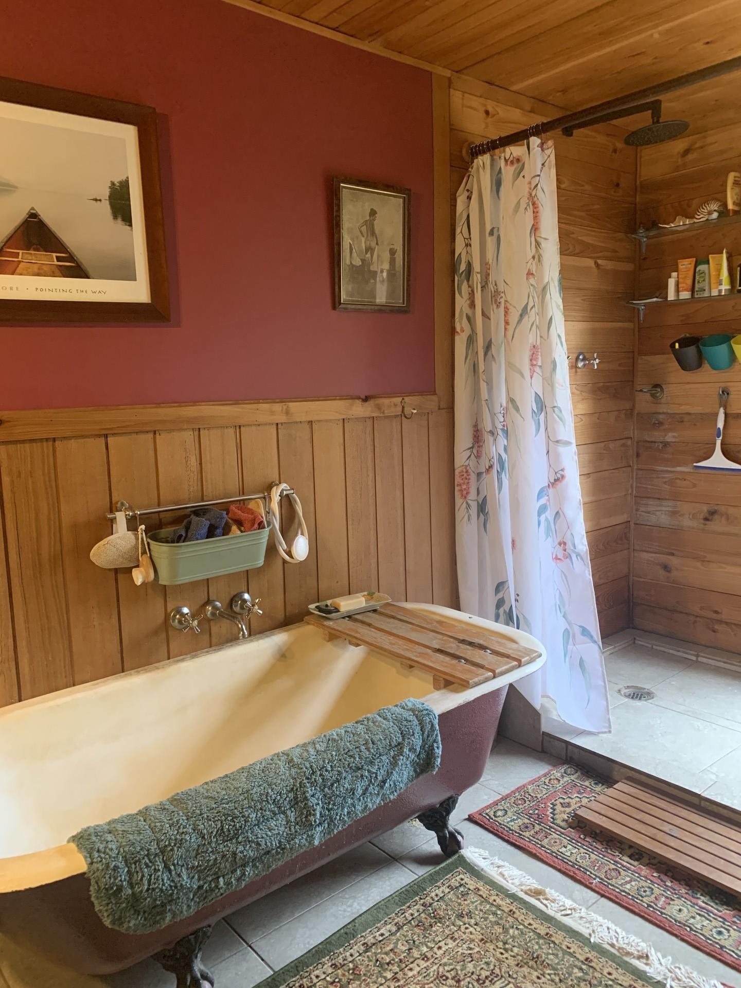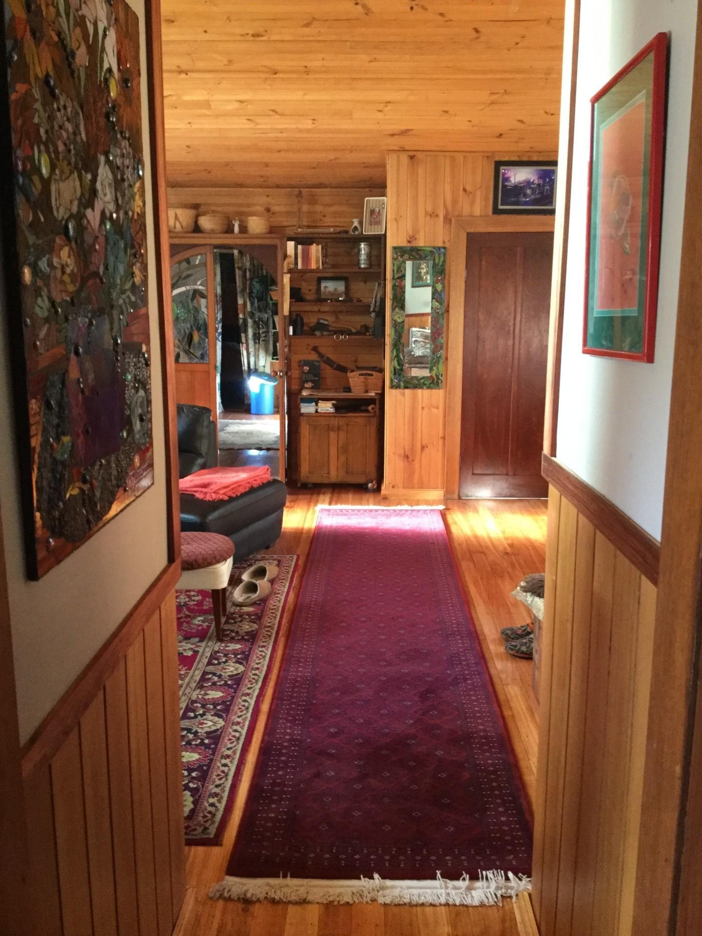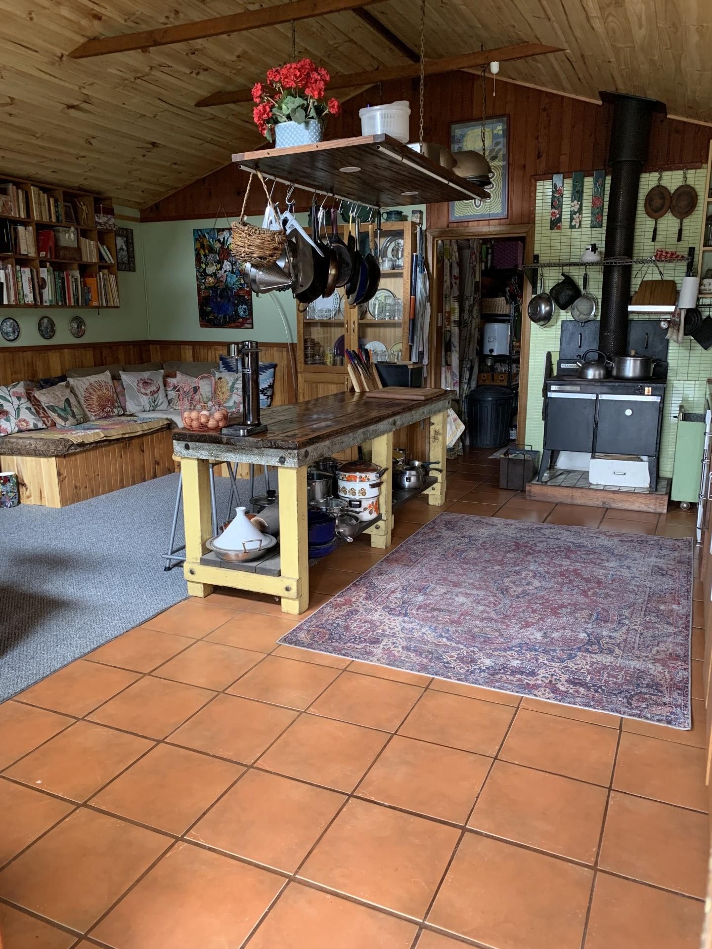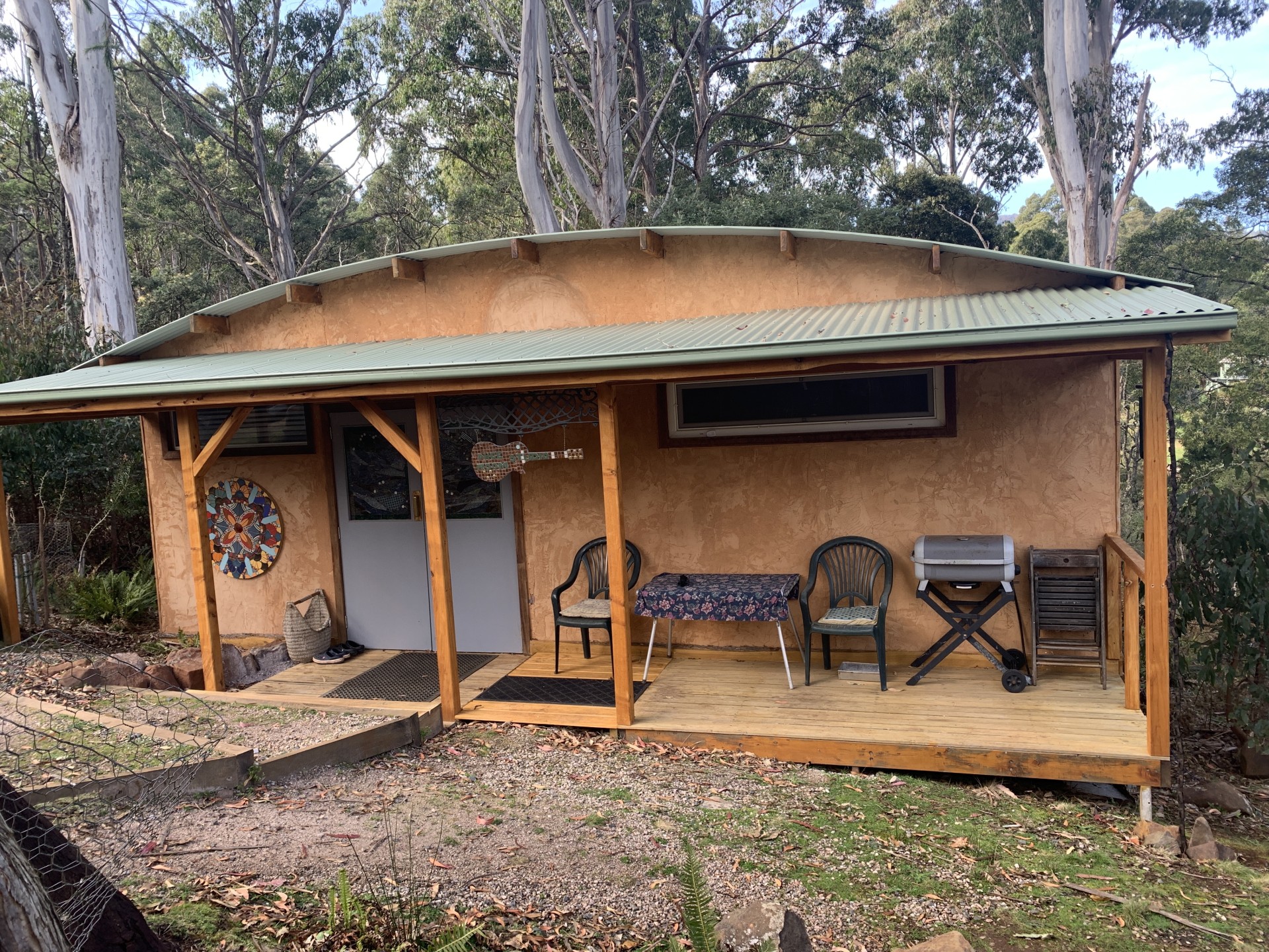 The main house has an Old World charm with all your modern ammenities. The open plan kitchen / dining room has both a wood fired stove for cooking and hot water and a gas top with a beautiful Tasmanian Blackwood bench top , there is also an under bench dishwasher.