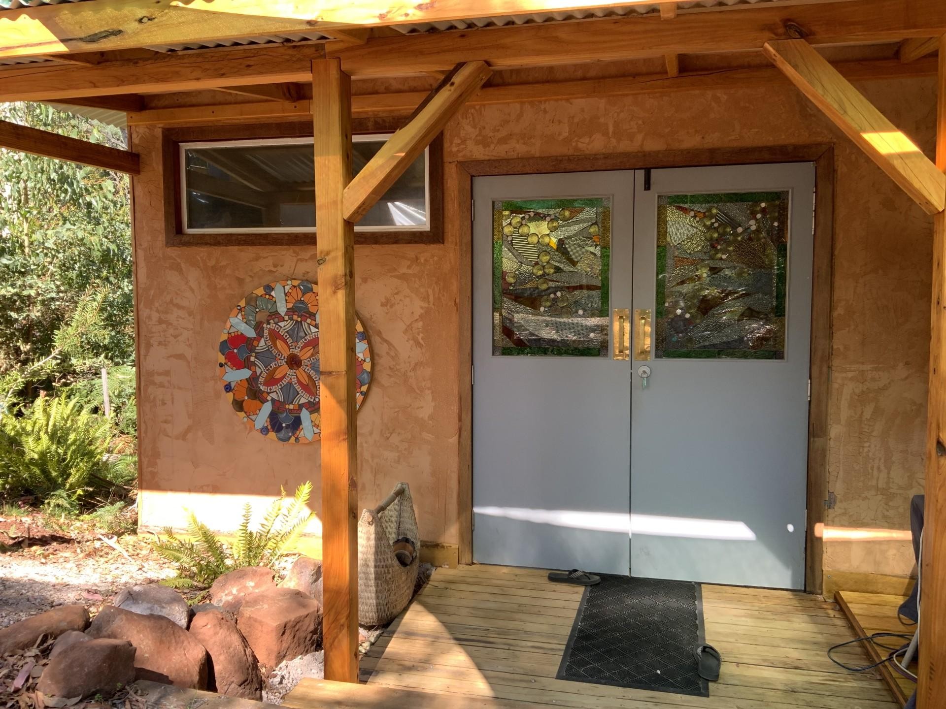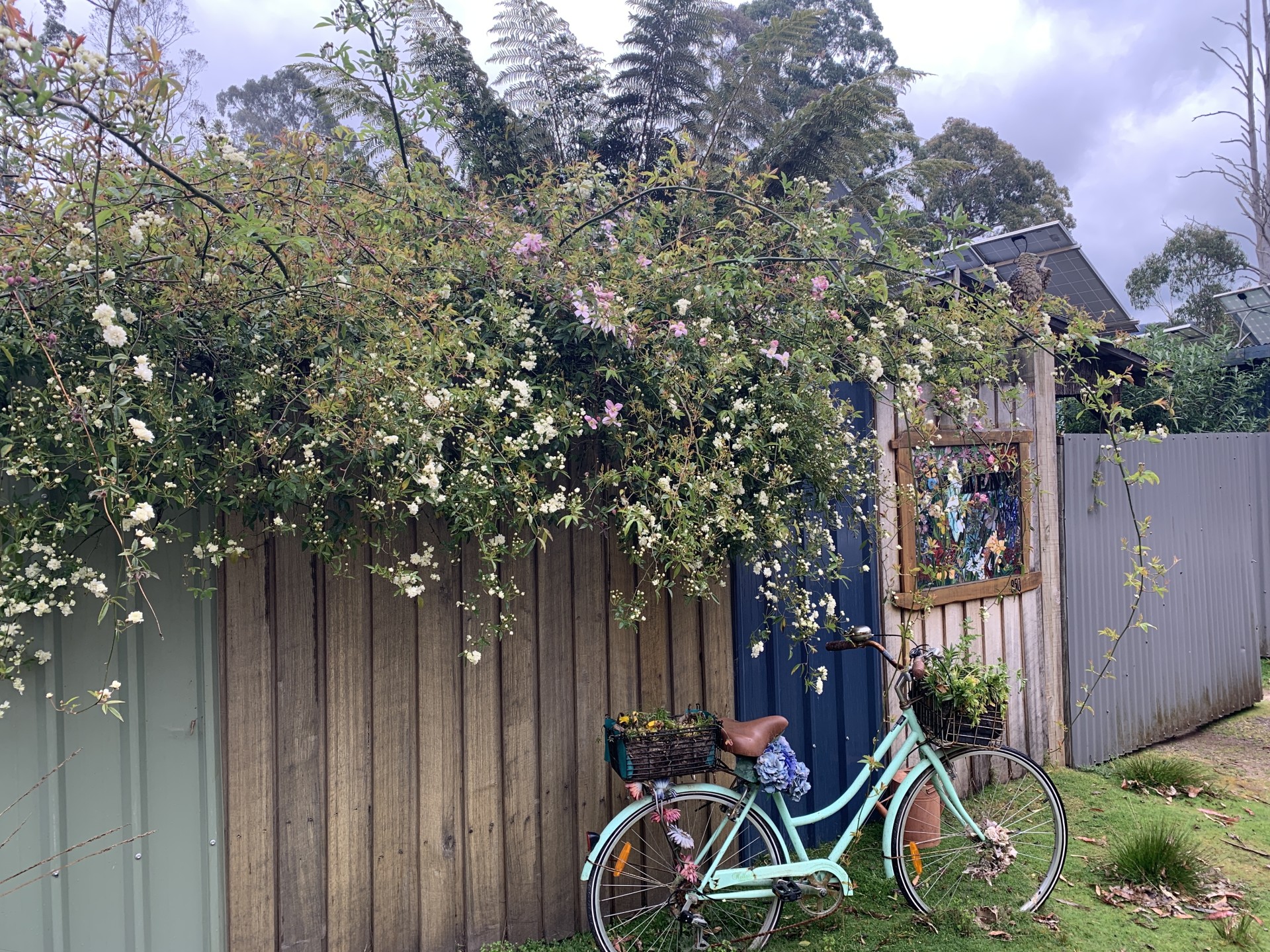 Supporting some of the solar panels is a two car carport which sits beside the power shed which hosts the lithium batteries and controls and also hosts space for a large freezer and clothes dryer etc.