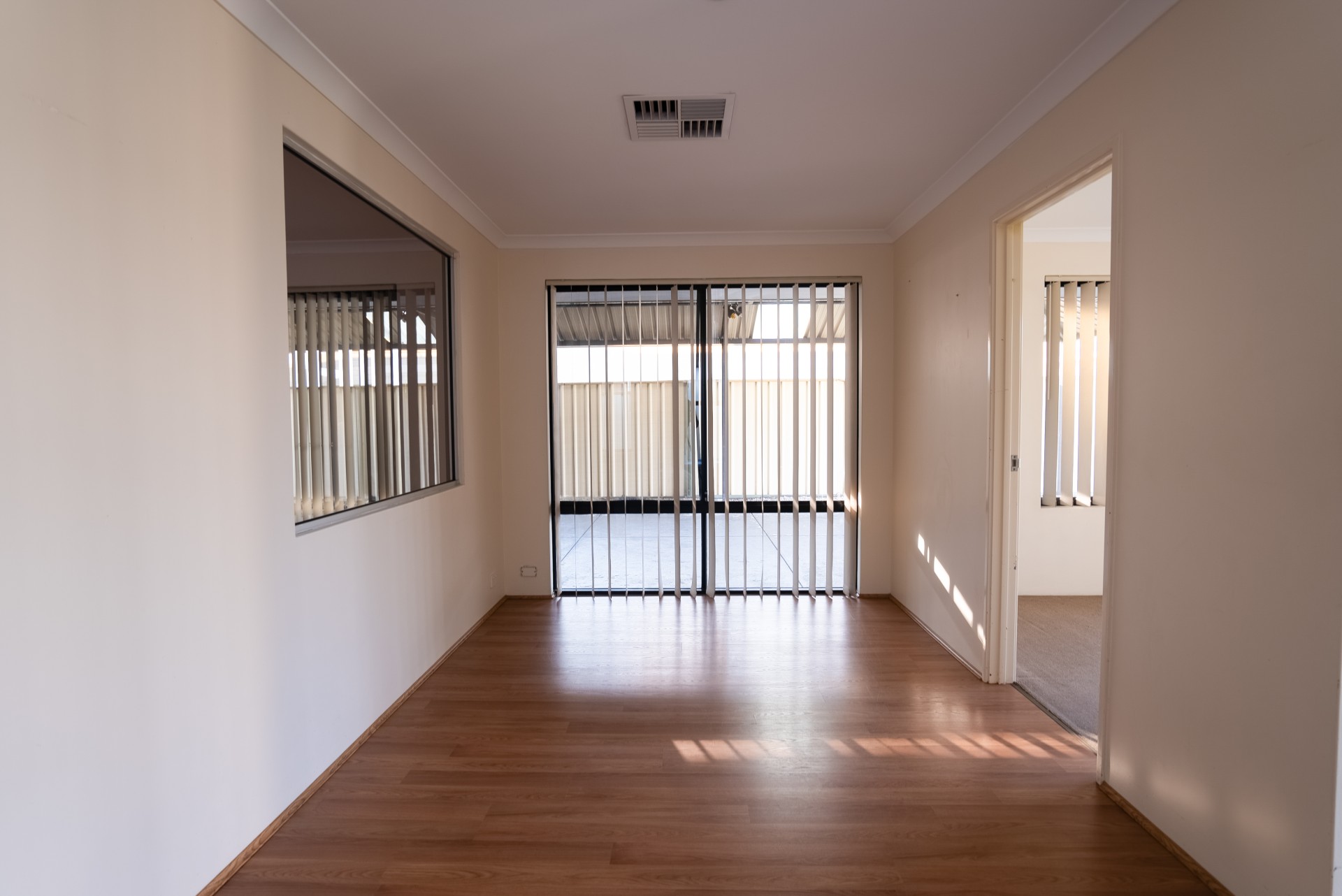 Upon entering you are greeted with the master bedroom which offers an ensuite with a capacious walk-in robe. Adjacent is the main living area conveniently placed for your leisure as soon as you walk in the door.