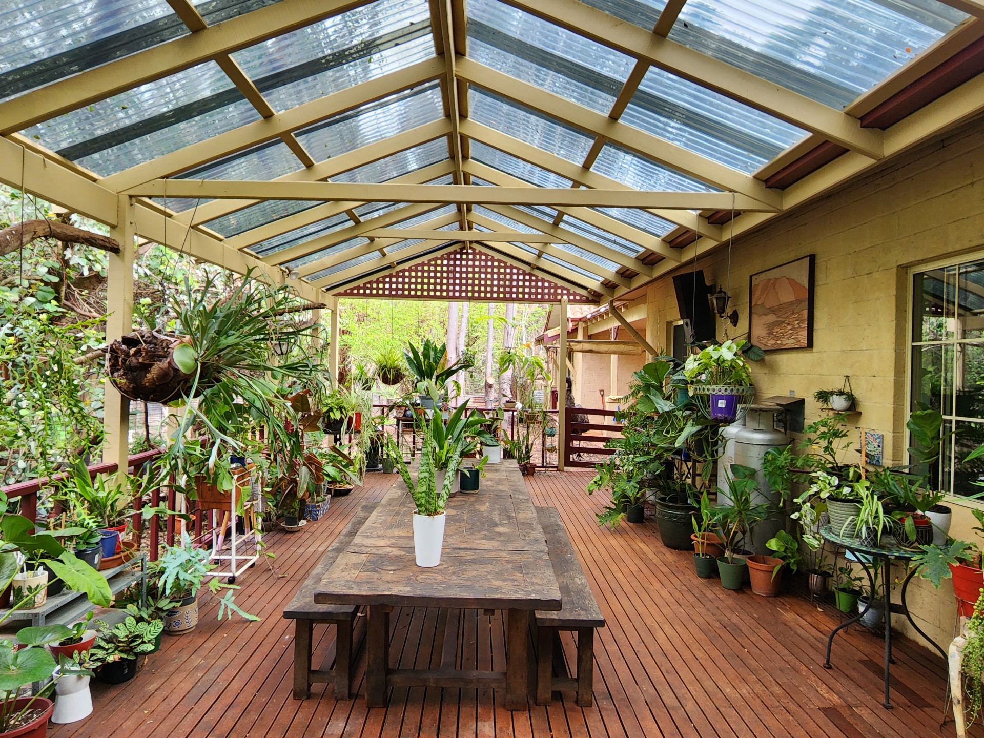 Seeking that all-important connection with nature feel free to join the resident Wattlebirds, Singing Honeyeaters, New Hollands, Blue Wrens, Silvereyes and "whoever else drops in" under the newly renovated, perfectly placed plantasmic pergola. Embrace the interconnectedness of life as you awake to a cacophony of bird song and fall asleep counting stars, listening to the flowing river water, the local Boobooks or boisterous barking Night Herons, or simply figuring out what on earth the Pobblebonks, in their fabulous fantasmic frog pond, are saying to each other.