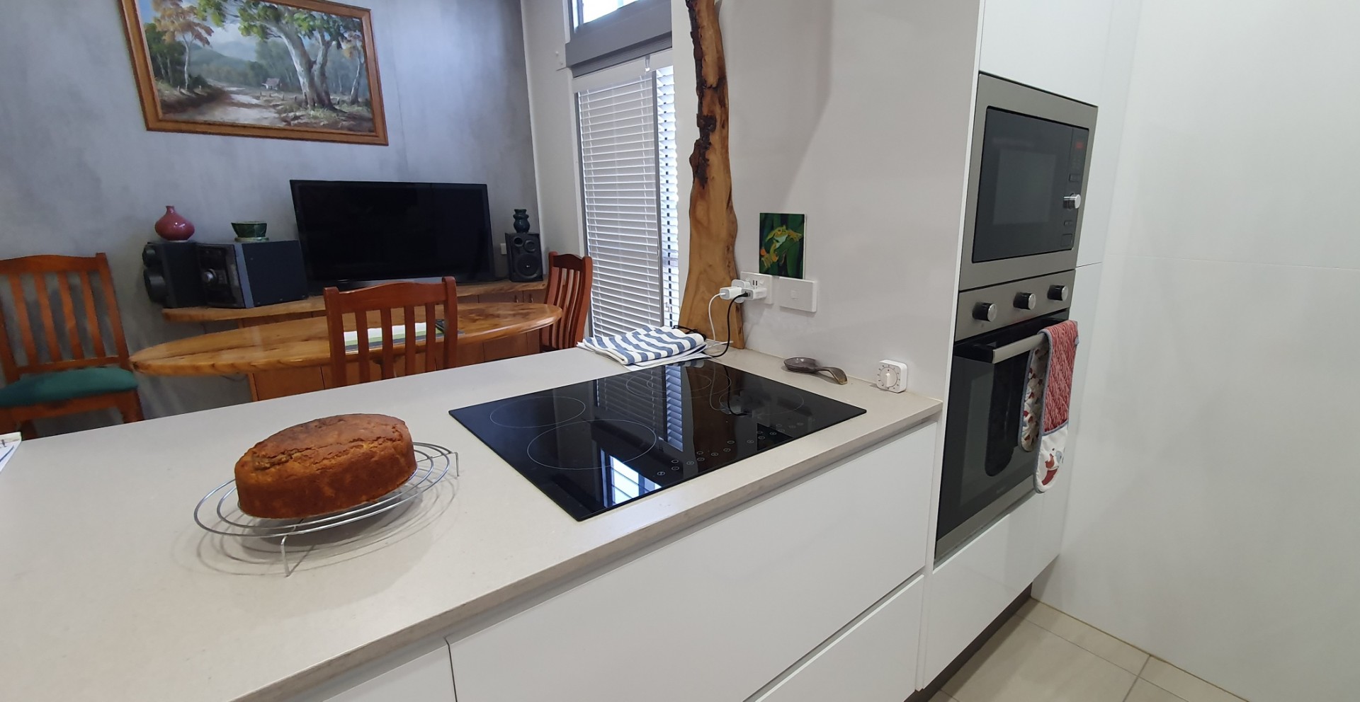 - Kitchen with great storage, stone benchtops, Electric oven, glass Cooktop, Stainless steel extraction fan and Microwave,