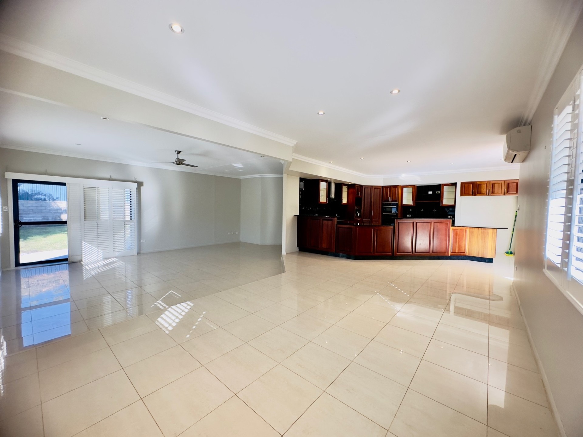 -The open-plan lounge and dining area is framed with many windows and tastefully finished with plantation shutters. For the movie lover, there is a media room off the lounge.