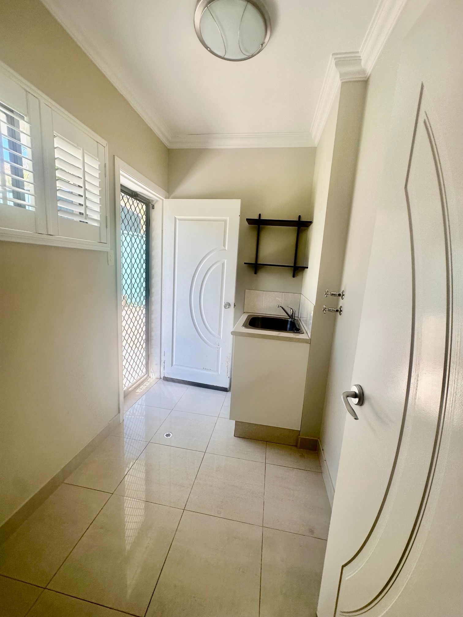 - Internal laundry with back door access to the clothesline. Plenty of cupboard storage for your linen with sliding doors.
