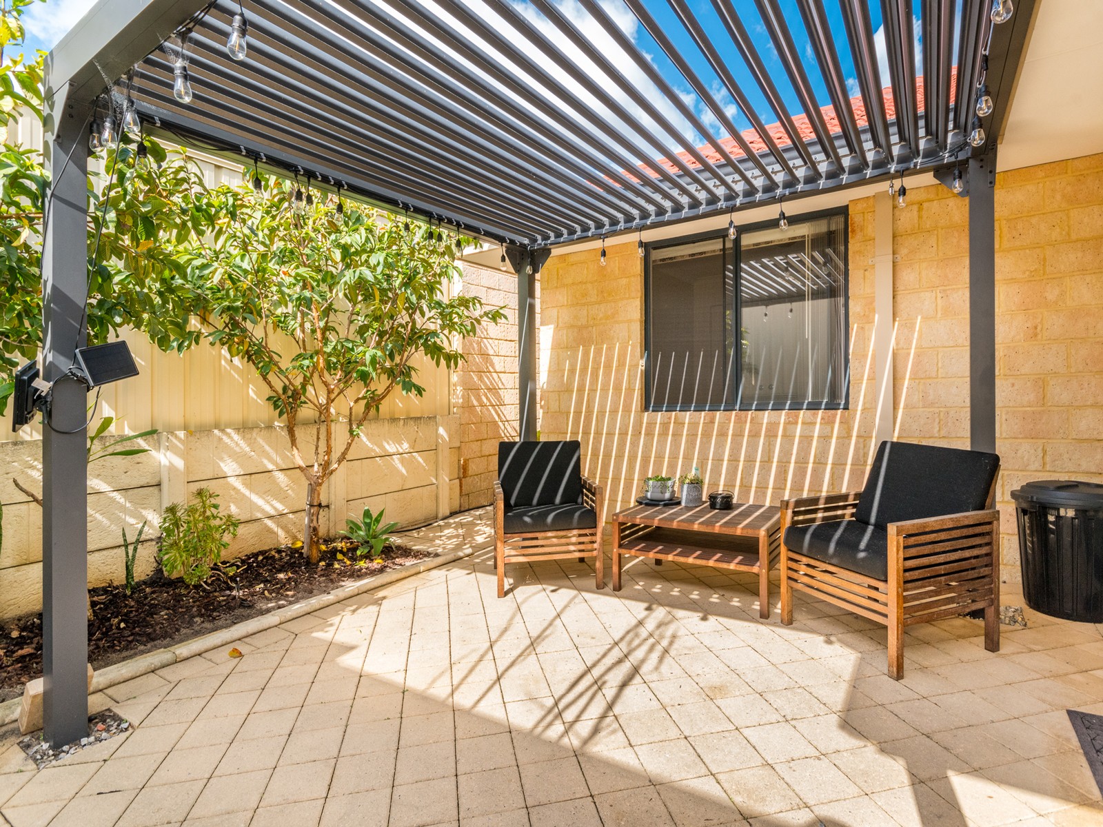The open-plan living and dining areas have a light and bright outlook leading to the easily maintained private outdoor area which boasts raised fences and a louvred roof, ideal for winter or summer entertainment.