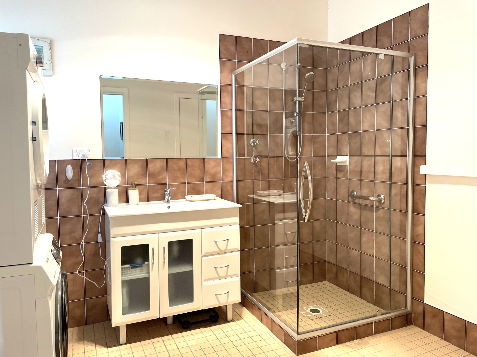 The bathroom has plenty of room for a washer/dryer, a laundry sink, a well-maintained vanity and basin, and a brand-new Caroma toilet. A brand new eco-friendly 155L Heat-Pump hot water system has been installed with 7-year warranty that ensures low running costs and ample hot water. Plenty of room for linen in the easy-access linen cupboard.