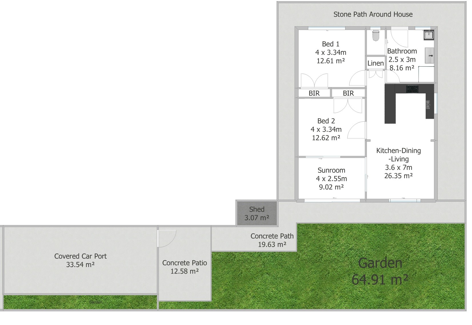 The house is stand-alone with clearly defined boundaries on a strata block with one other house. The yearly strata fees are $100, which is third-party insurance for the common property driveway.