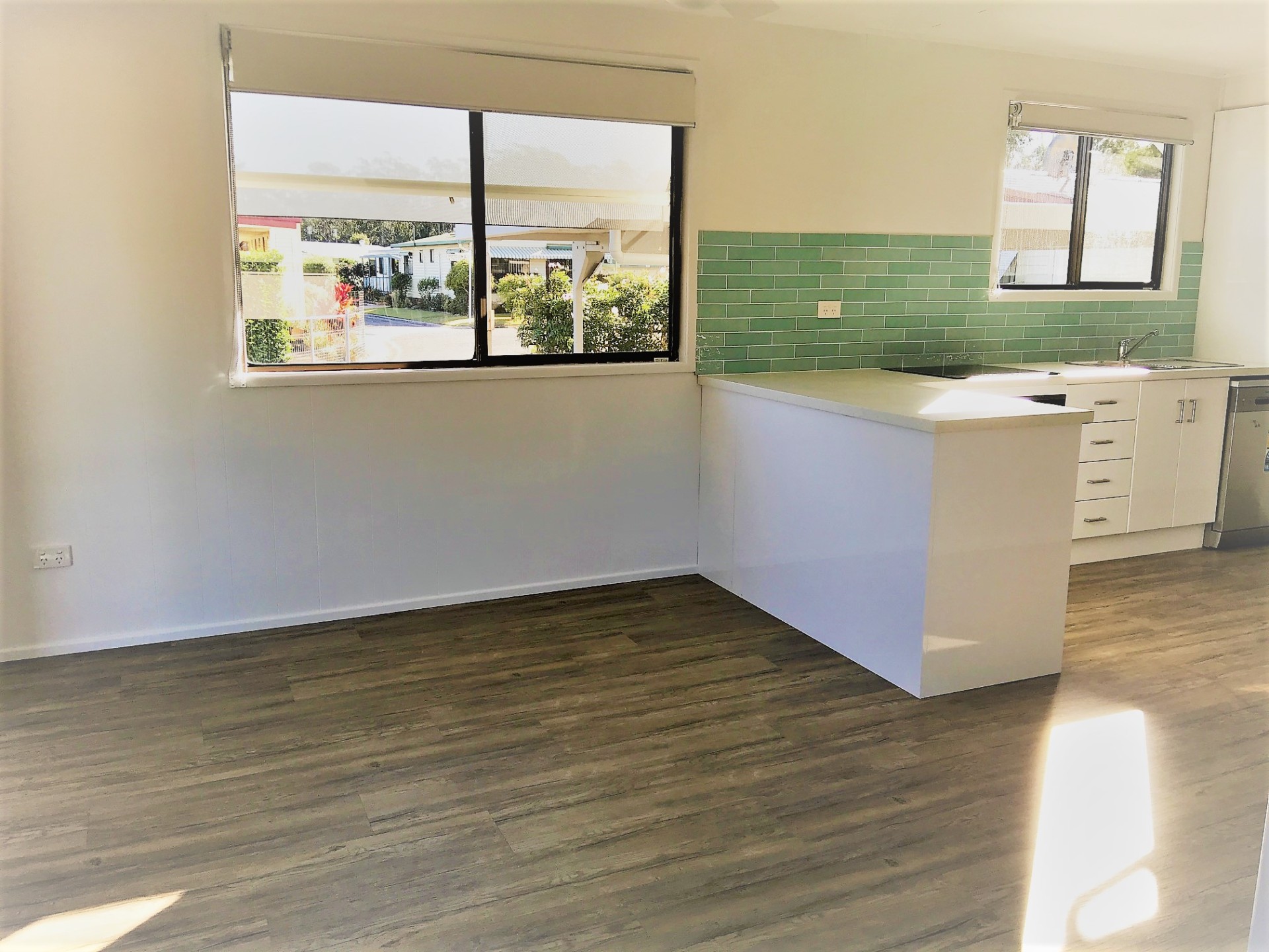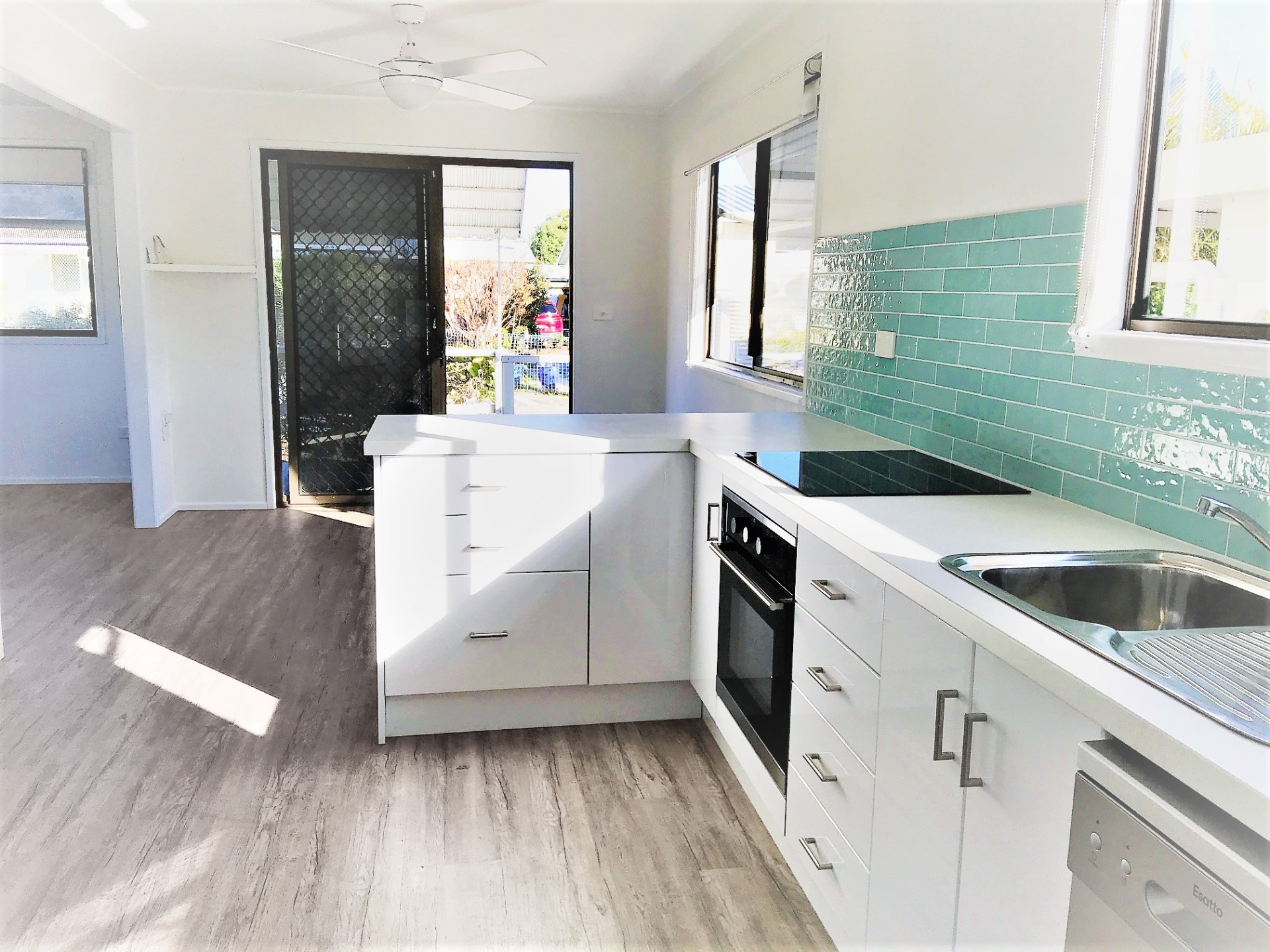The air-conditioned home has been freshly painted throughout, has new flooring to all areas (timber look vinyl flooring to all living areas, carpet to bedrooms & tiles to bathroom, toilet & laundry), sparkling new kitchen, lovely new bathroom with oversized shower, new toilet, new ceiling fans in both bedrooms, dining and living areas, new lights throughout, new internal and external blinds and front and back verandahs (including the back ramp) have new decking.
