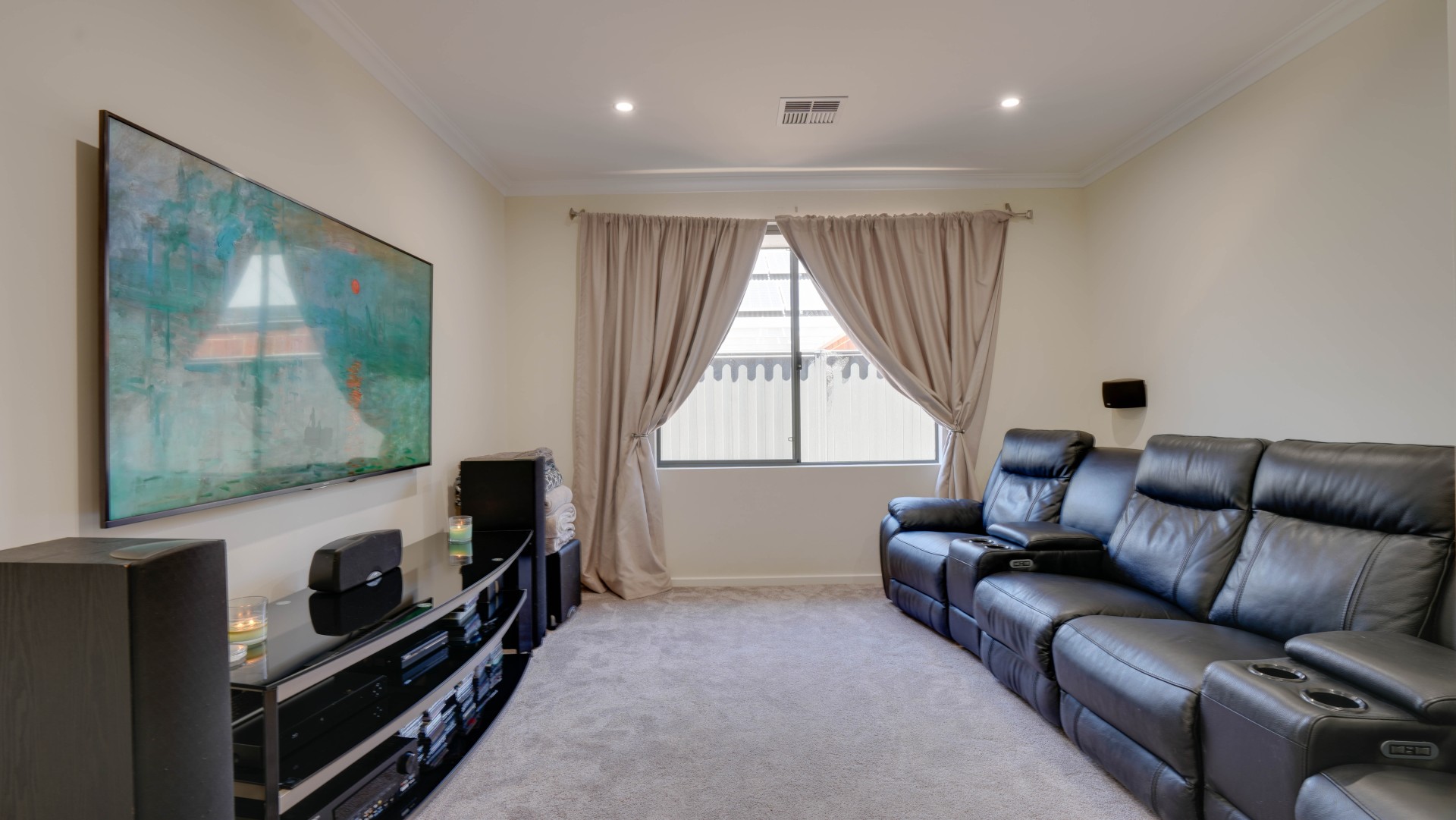 For indoor fun the home has a huge Theatre Room for movie nights and an even bigger Games Room which will fit a full-sized Snooker/Pool Table and is fitted with Smart TV connections. The Games room can be conveniently shut off from the main living areas and has a double glass sliding door of its own to the backyard.