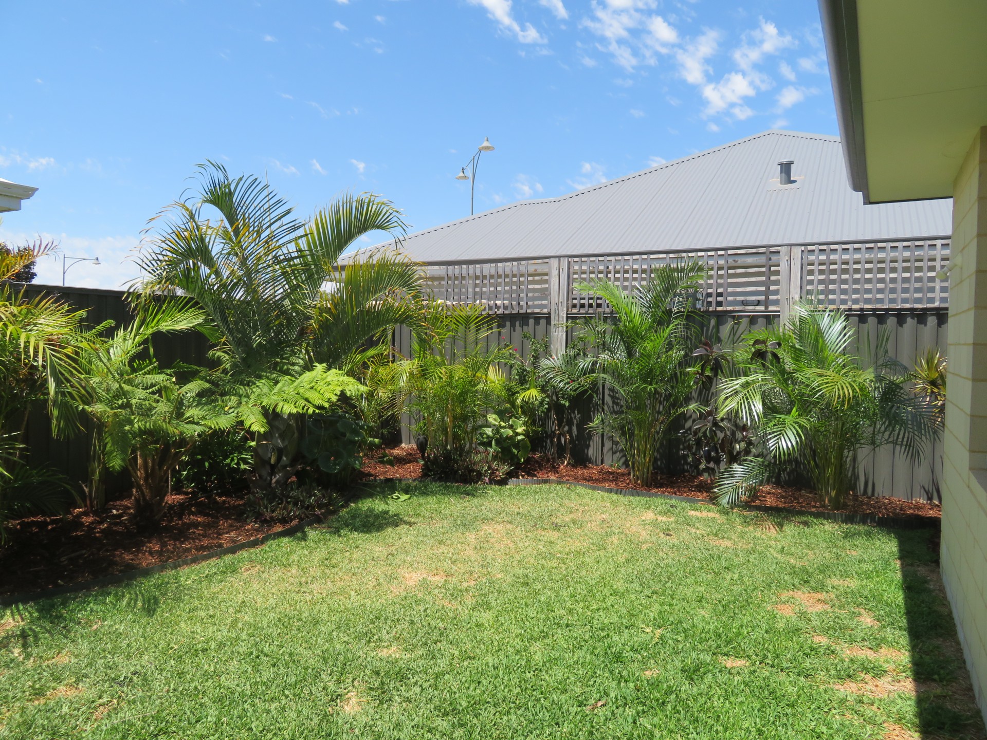 - Tropical Gardens front and back with solid wood decking and large grassed area