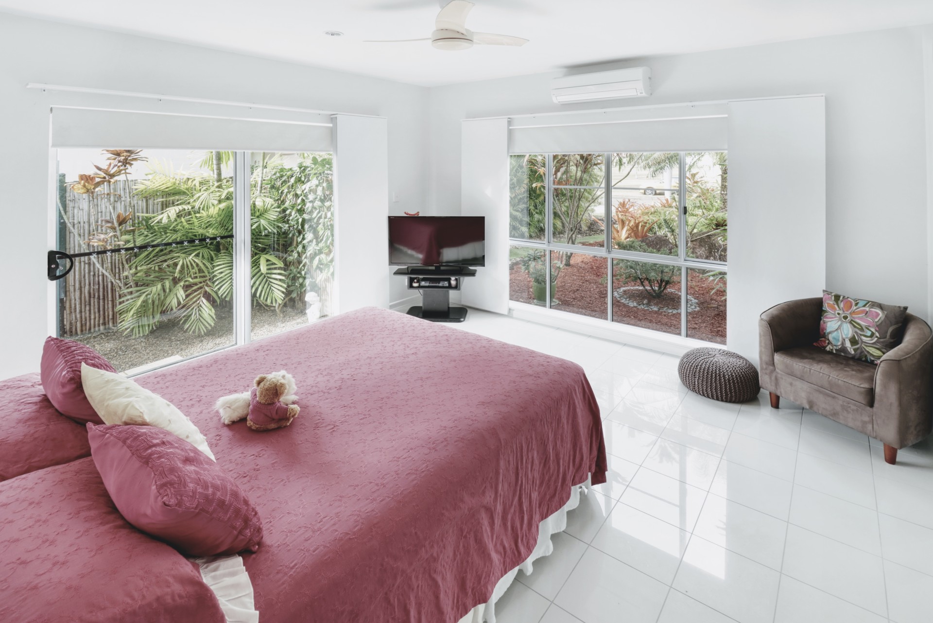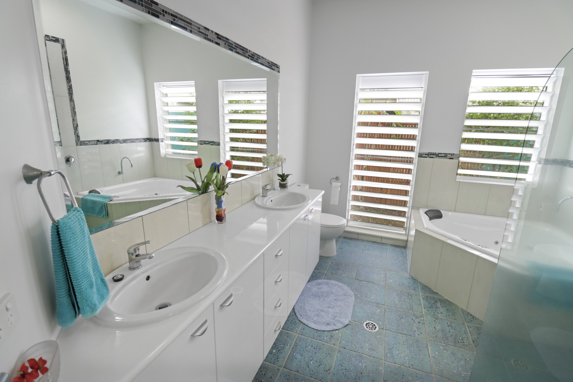 - The main bedroom overlooks the landscaped gardens towards the Cardwell Ranges, with a large walk-in wardrobe and ensuite bathroom with double vanity and spa bath