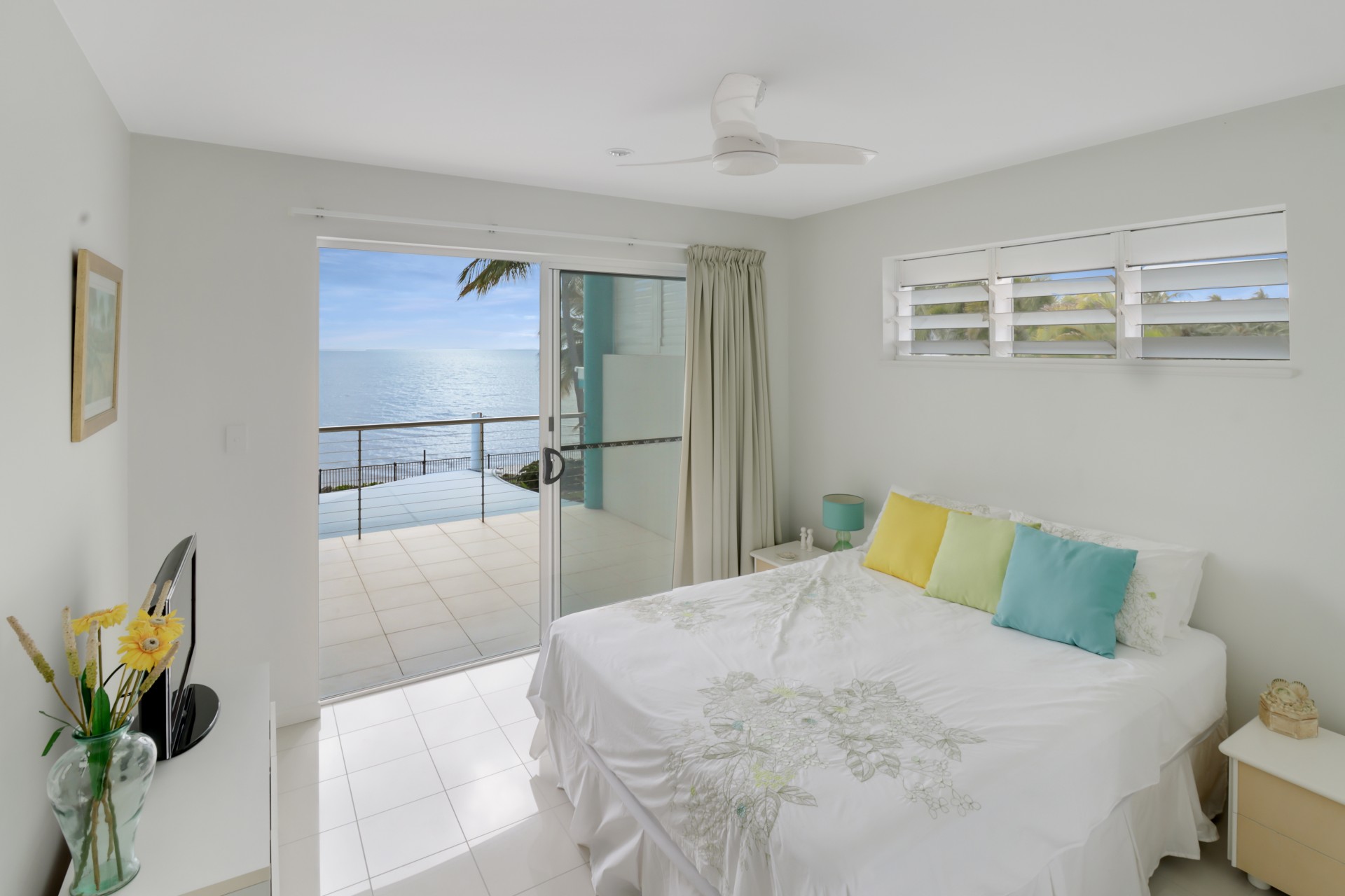 - Upstairs are the guest quarters, with two bedrooms, built-in robes, a bathroom, a sitting area and a built-in workspace. Both bedrooms open out onto the veranda with magnificent views towards Hinchinbrook, Dunk Island and beyond