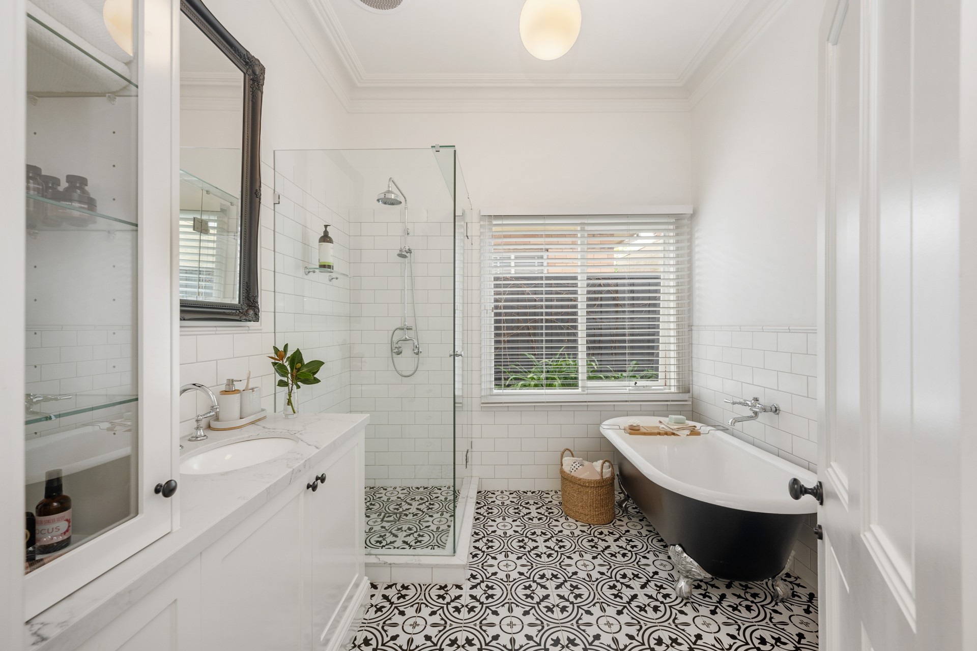 • Period details complimented by modern comforts are ideally combined throughout the home, including new Bosch appliances - a free-standing oven with 6 burner gas cooktop, fully integrated dishwasher, security system, stone bench tops throughout, Brodware tapware and a luxurious clawfoot bathtub.