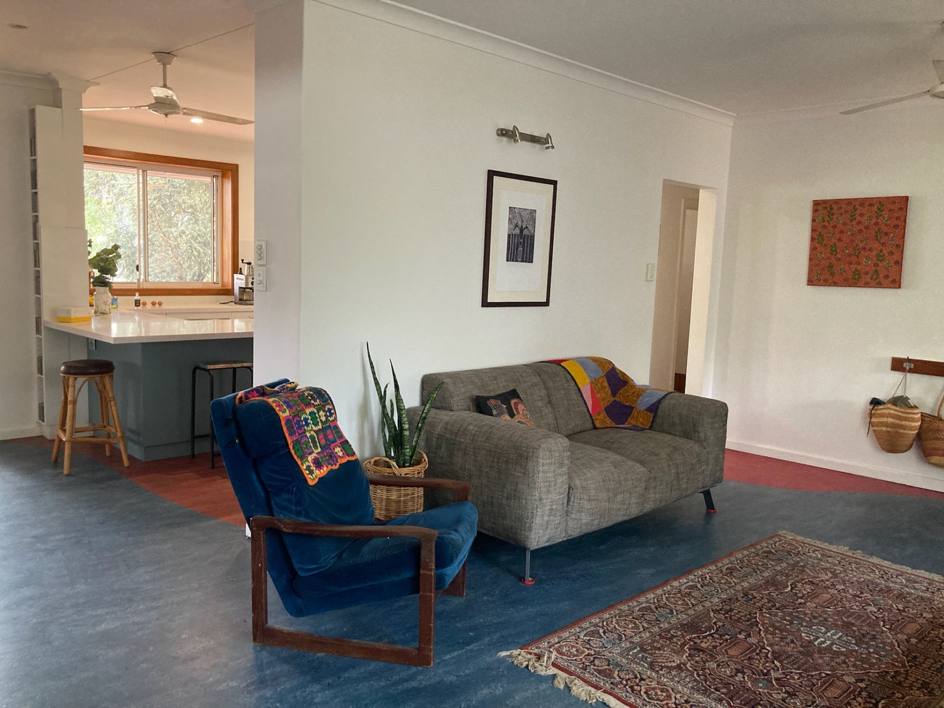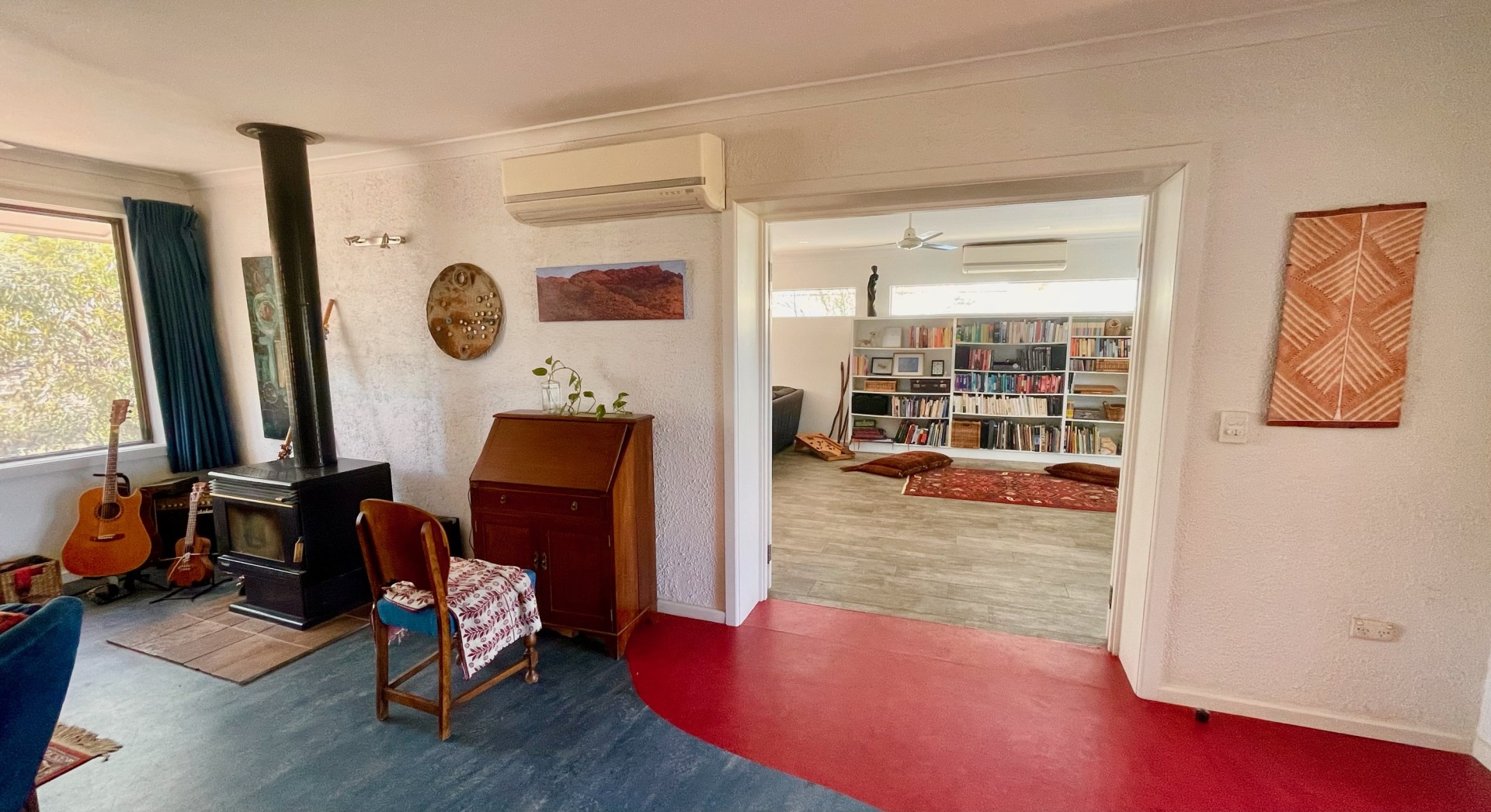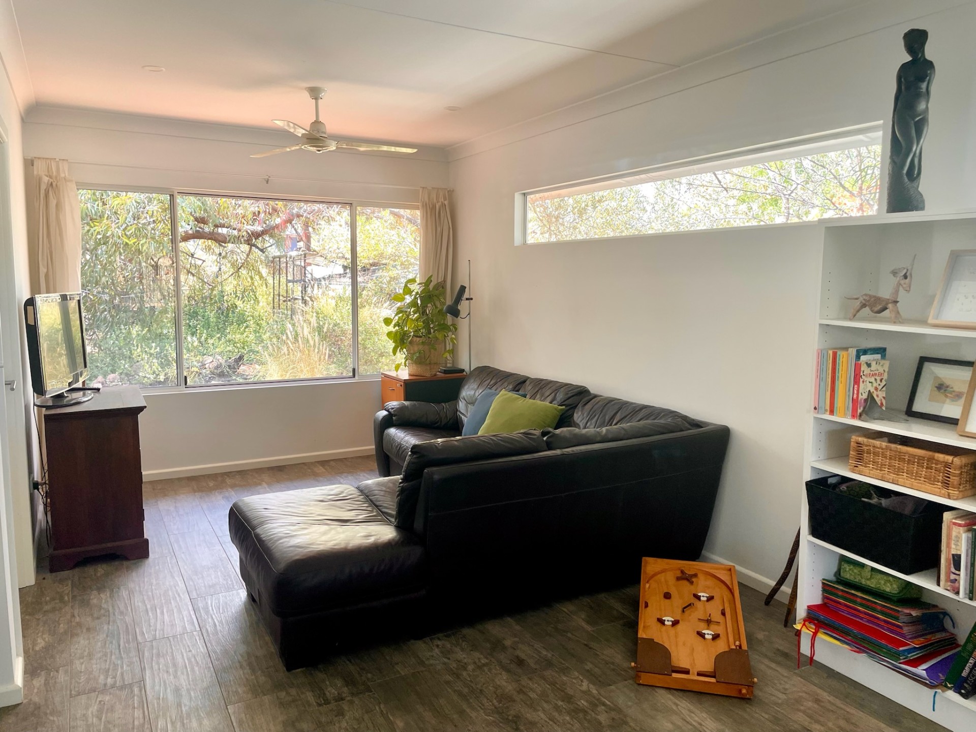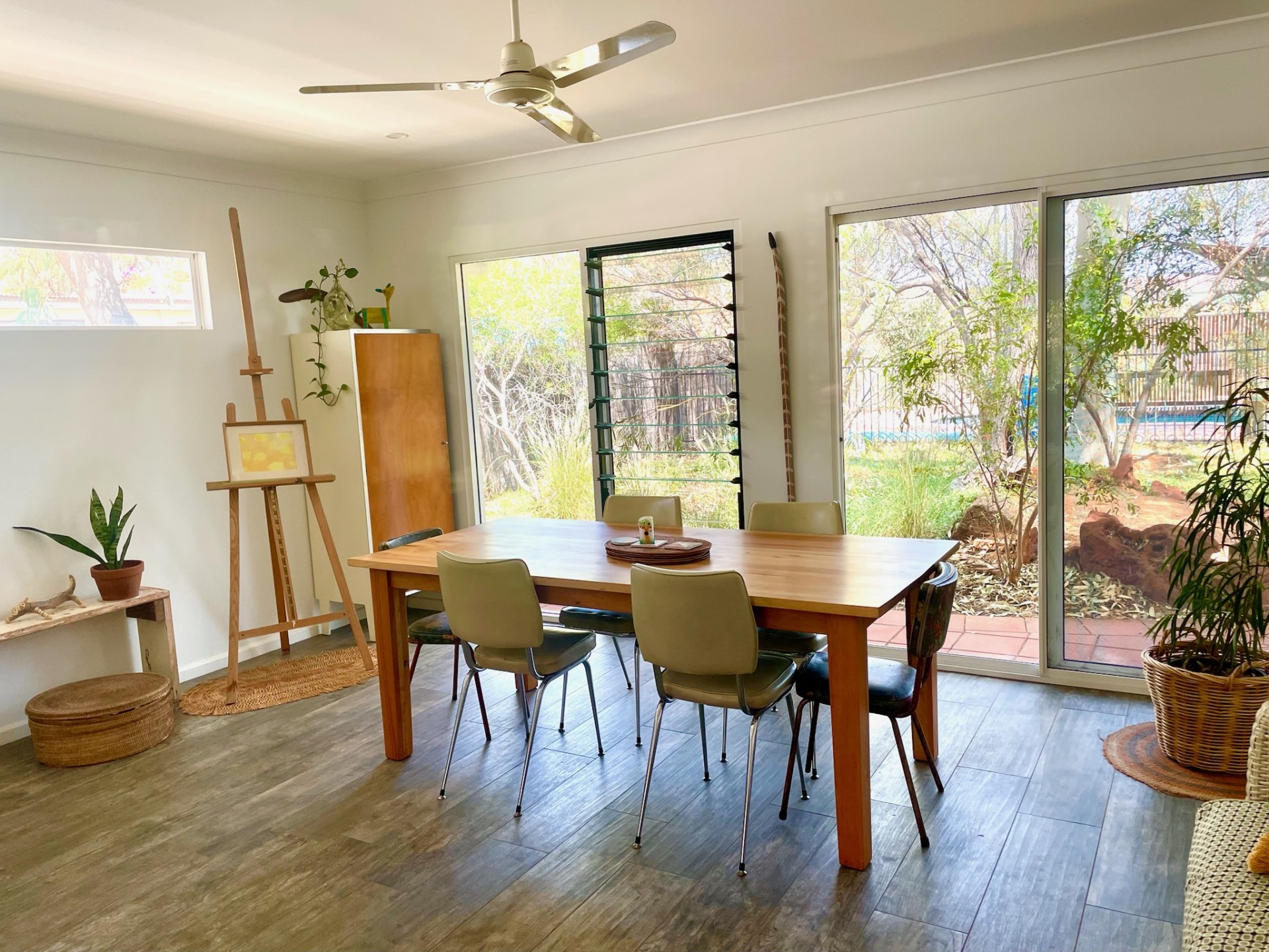 - Enjoy the versatility of the 'Long Room', one of two indoor living areas. It's spacious and light-filled, enjoying huge windows that overlook the gardens. Its current set-up has a 'chill out' TV area here, a dining table and another lounge area to relax in (or for the kids to build cubbies!). This room is a wonderful, cool, versatile indoor space to spread out in this climate.