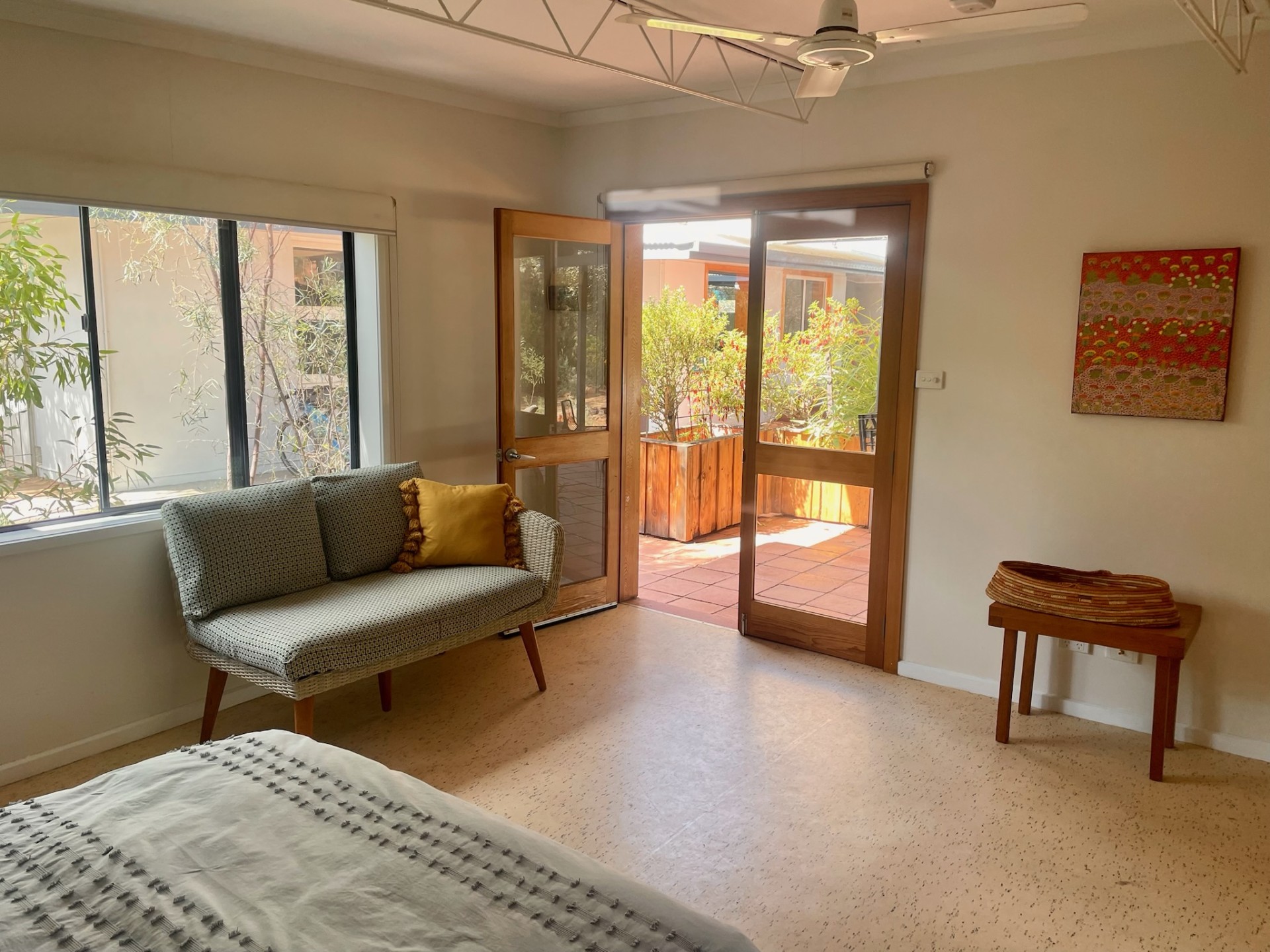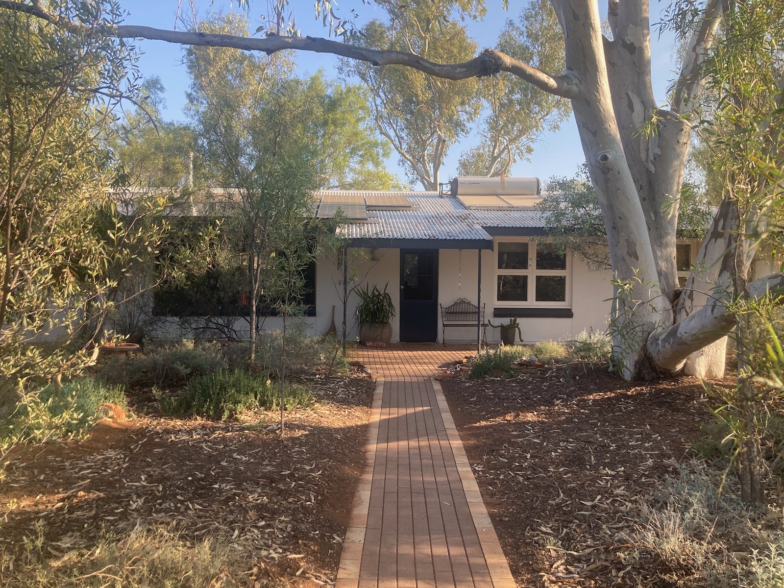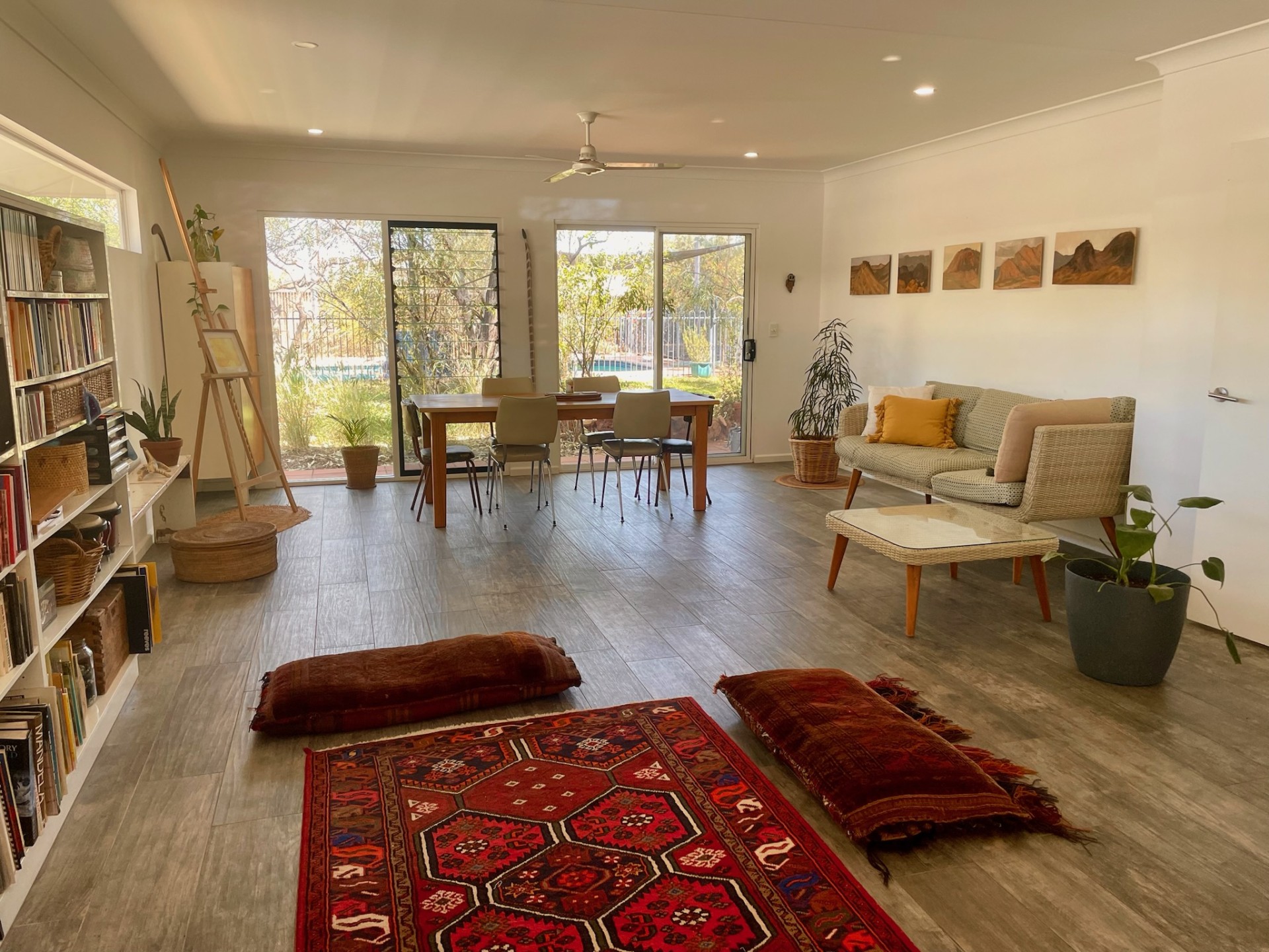 - Enjoy two large, covered outdoor entertainment areas overlooking the garden, lawn, pool and MacDonnell Ranges. This offers shaded and beautiful spots for sundowners and shared meals. With fans overhead, it's a great space in warmer weather.