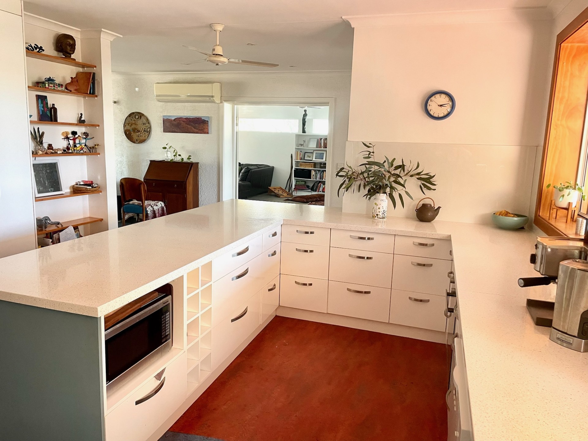 - Enjoy a huge kitchen with large windows and views to the MacDonnell Ranges! Watch the hot air balloons while you sip tea :) Miele appliances, two ovens and room for everyone to connect over mealtimes.