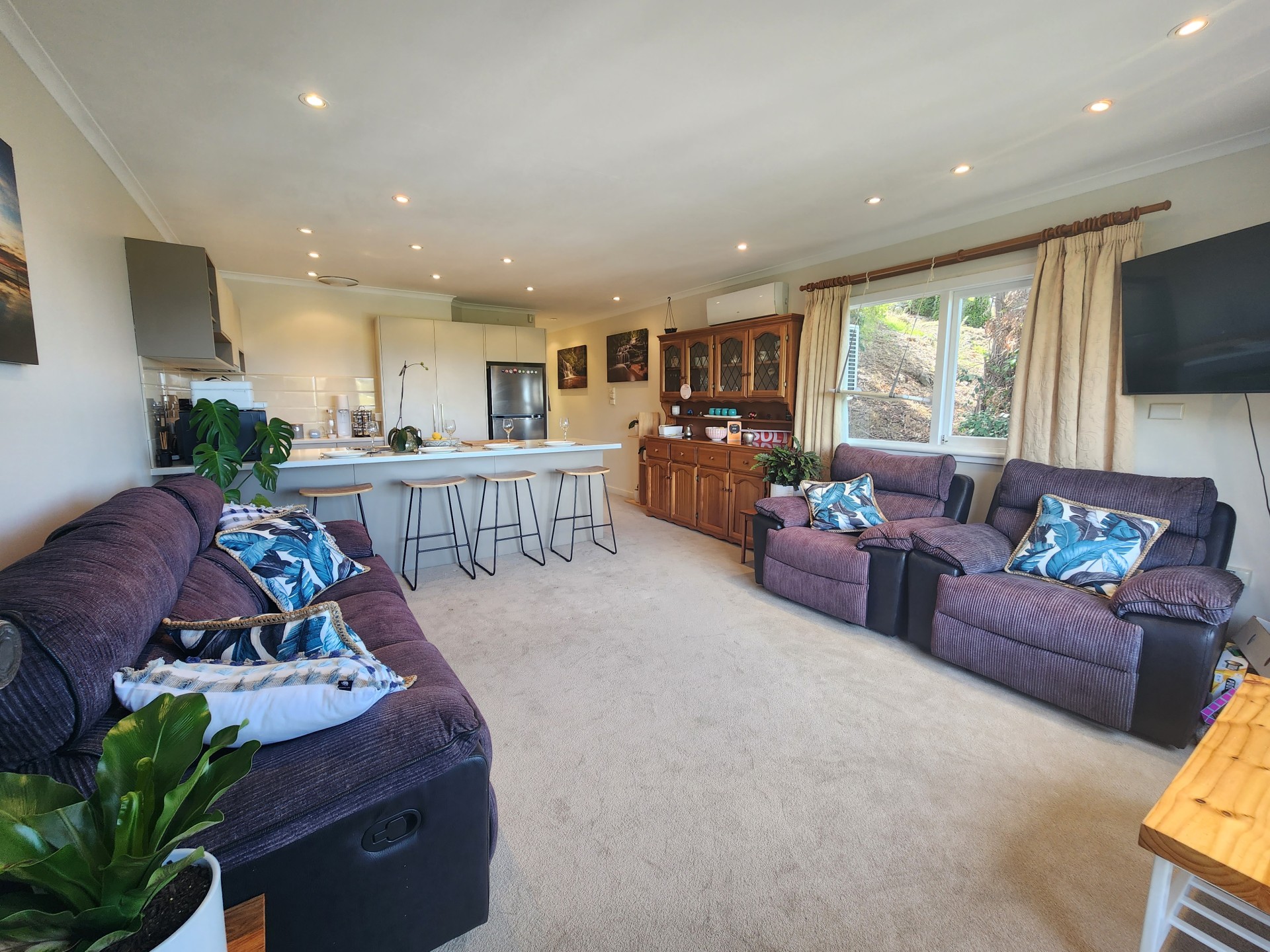 The unit has been refurbished, with new carpets, paint, split cycle heat pump, window furnishings and a smart modern kitchen with dishwasher. The huge bedroom easily fits a king bedroom setting and the bathroom has extra storage space and very roomy shower. The whole unit is sunny and bright with great views to the River Derwent.